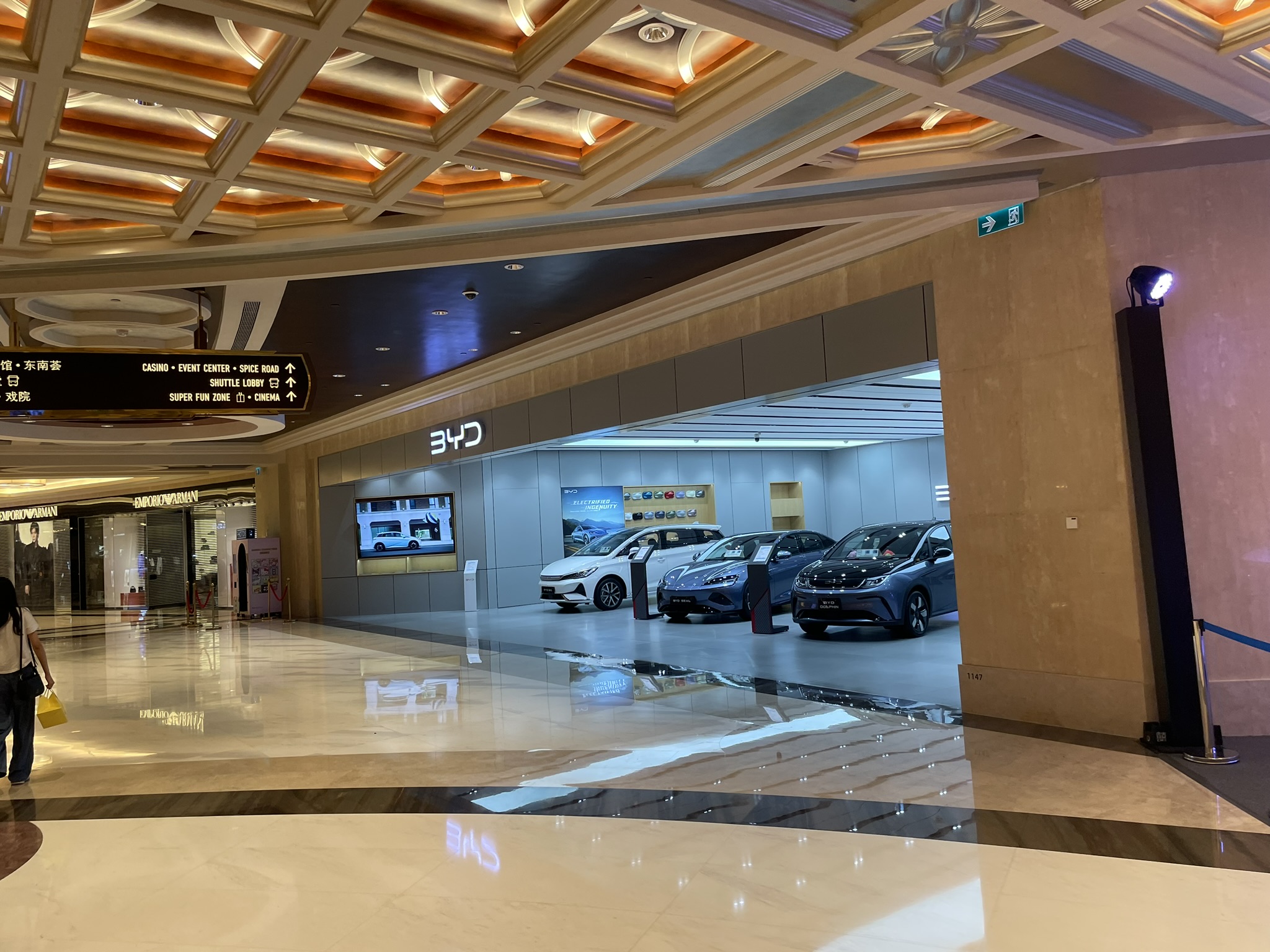 스튜디오 호텔 1층 쇼핑몰에는 전기차 매장도 있어요. 특이하네요. 호텔 쇼핑몰 내부에 자동차 매장이라니… 중국의 특별 행정구라서 중국의 전기차 매장을 어렵지 않게 볼 수있네요.