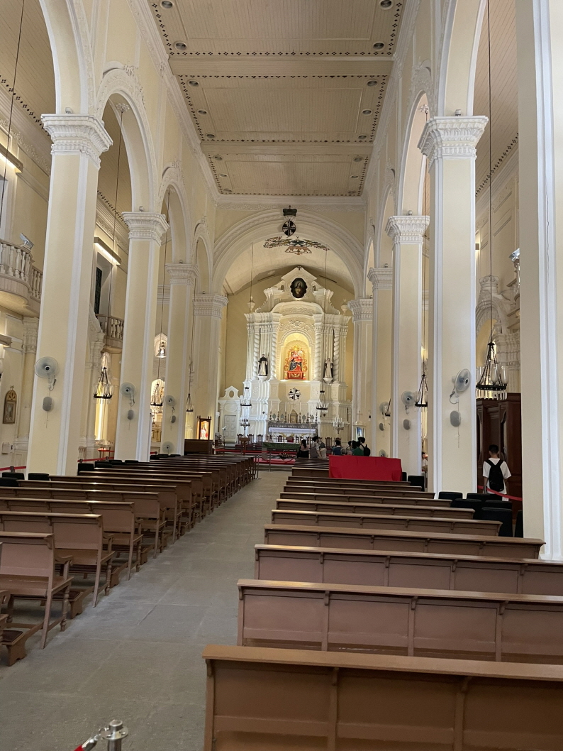 처음에는 예배만 볼 수 있을 정도로 방 하나 크기의 작은 예배당이었는데요. 포르투갈의 내전에 의해 로마 가톨릭에 대한 제재가 이루어졌습니다. 그 후 포르투갈 군대의 물류 창고 등 용도가 많아지면서 규모가 확장되었습니다. 이후에 오랜 세월이 지나서 1997년이 되서야 다시 본래의 성당으로서 모습을 되찾았습니다.