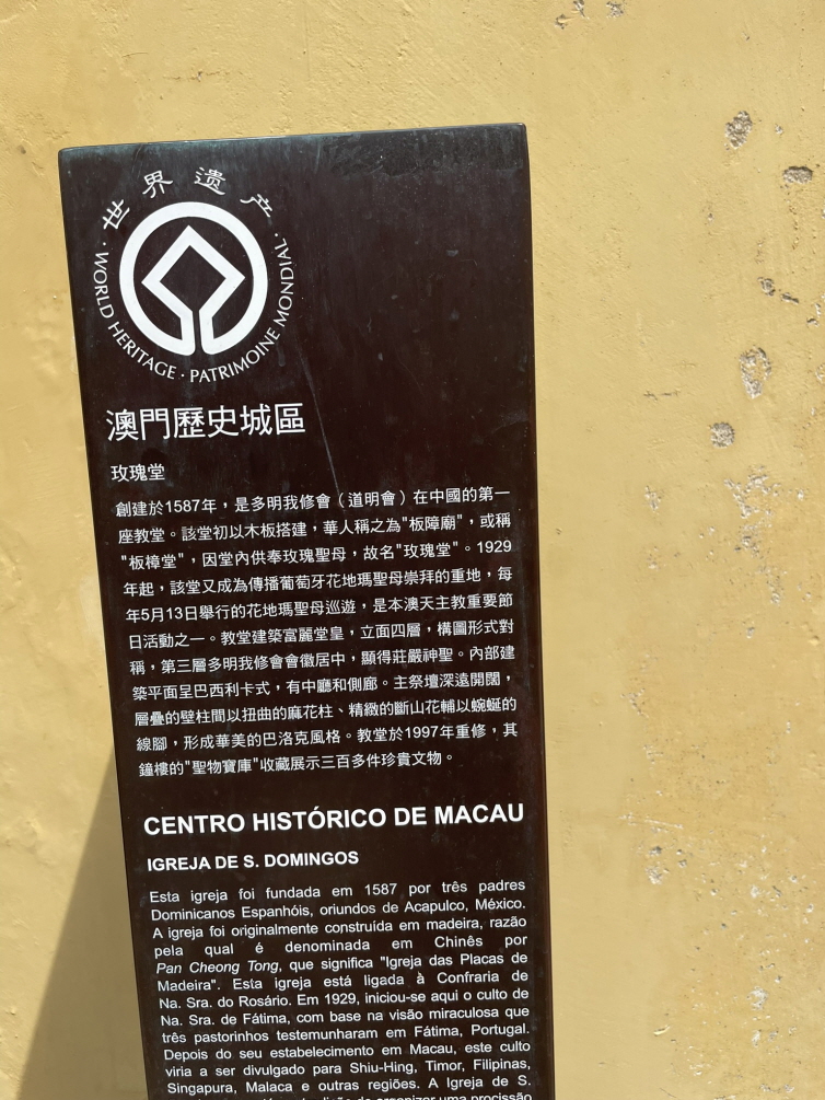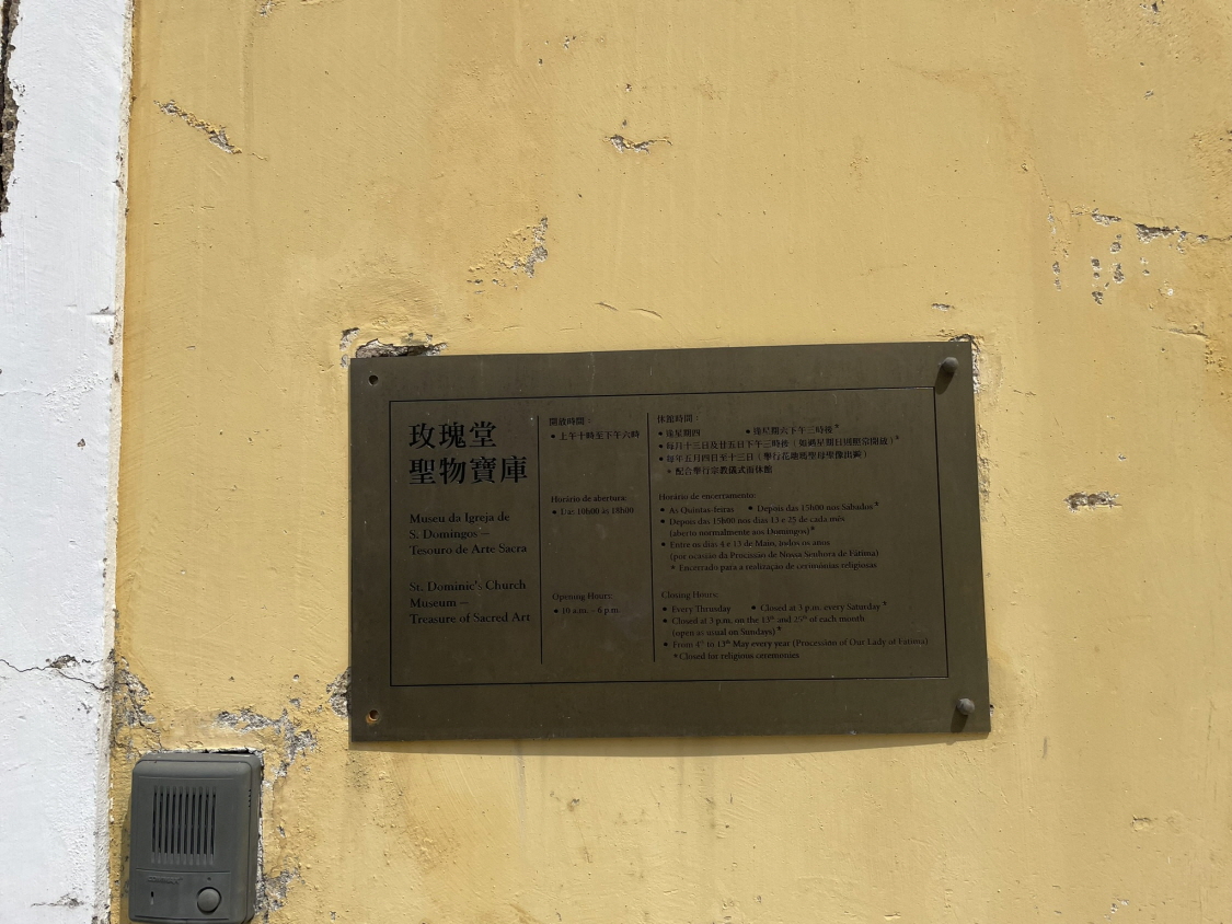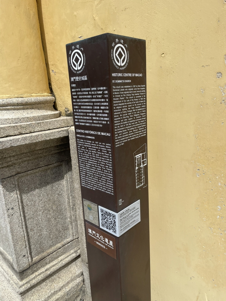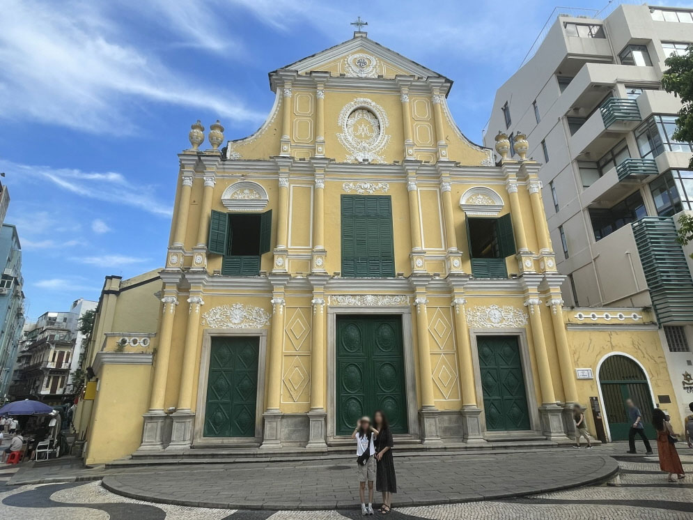 세나도 광장에서 분수대 방향 주택가 안쪽으로 조금 걸어오면 초록색 창문이 있는 노란색 건물의 성당이 있습니다. 이곳은 성 도미니크 성당입니다. 마카오 최초의 성당인데요. 1587년 스페인 도미니코회에 의해 세워졌습니다.
