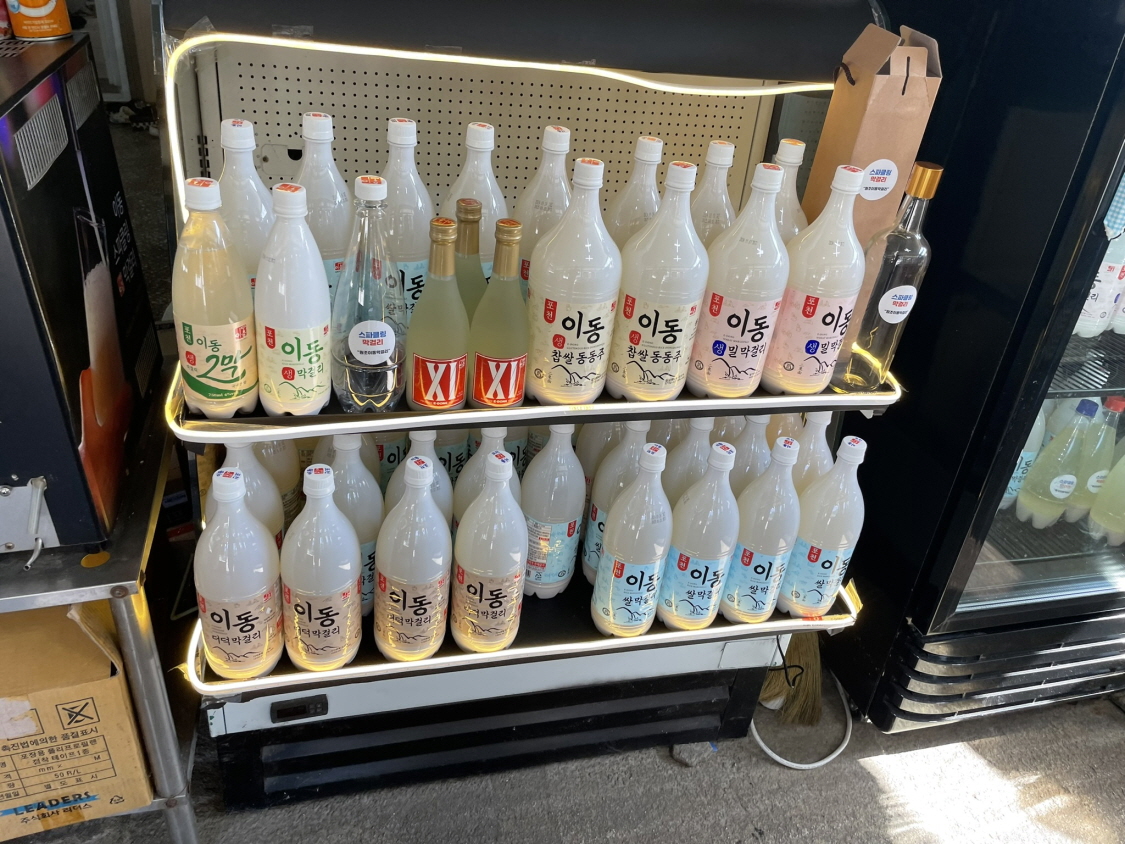 그래서 냉장고에 있는 것 중 국내산 쌀로 만든 막걸리를 사 왔어요.