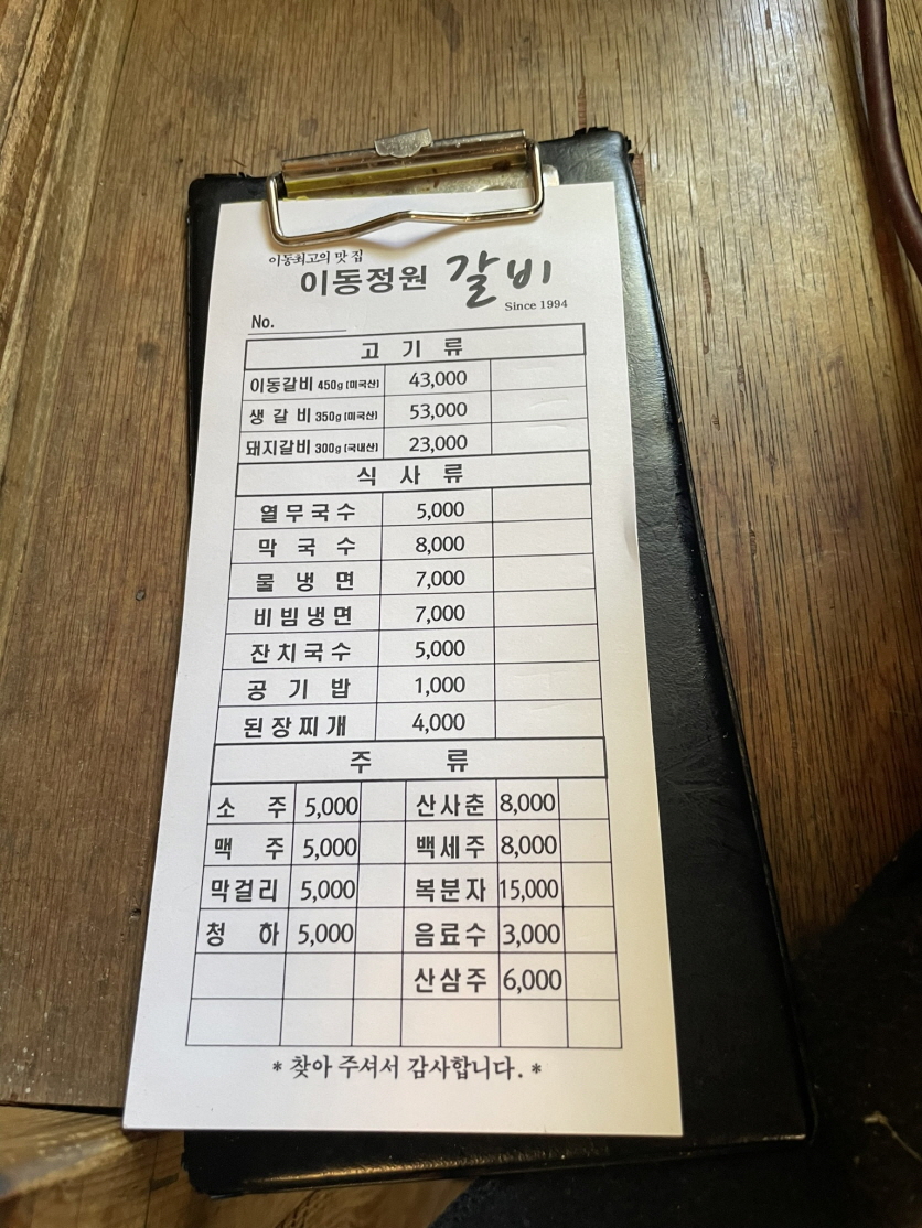 가격은 이동갈비(450g)- 43,000원, 생갈비(350g)- 53,000원이네요.