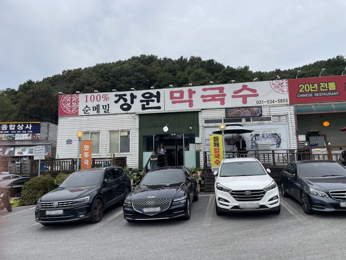 포천에서 유명한 장원막국수입니다. 주소는 포천시이지만 위치는 포천과 남양주 사이쯤으로 생각하면 됩니다. 남양주로 넘어가는 지점이 500미터도 안 되는 위치에 있어요.