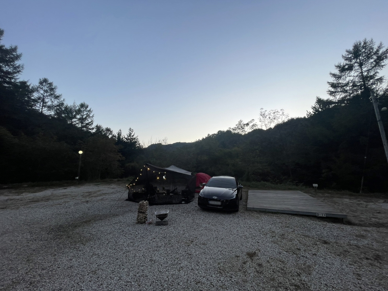 캠핑 와서 잠을 자면 더 많이 자는 것 같아요. 산속이라 그럴까요? 낮에 캠핑장 세팅하며 피곤해서 그럴 수도 있겠네요.