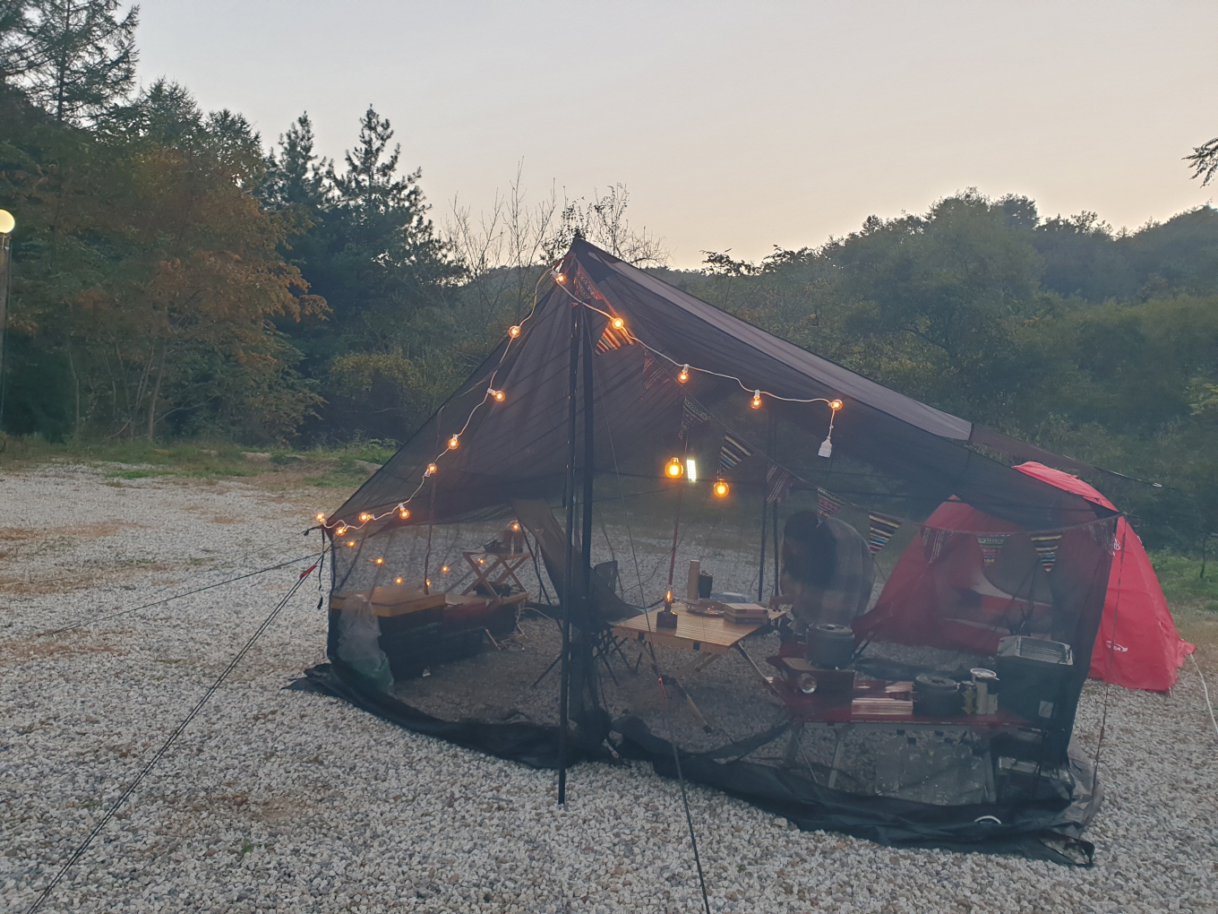 여름이면 캠핑할 때 항상 불편했던 점은 벌레나 모기가 날아온다는 거예요.밤에 랜턴을 켜 놓으면 나방과 불빛을 보고 달려드는 벌레들이 더 많아집니다.터널형 텐트나 대형 돔 쉘터를 사용하