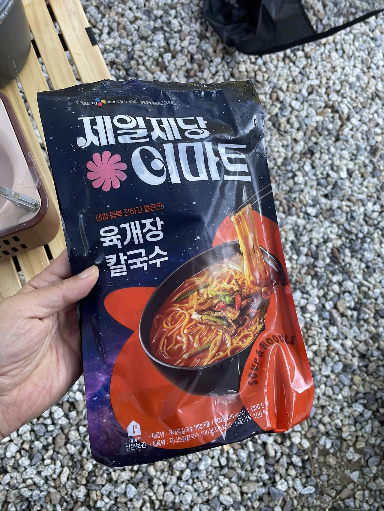 캠핑장에서 먹으려고 이마트에서 장을 보고 있었어요. 육개장 칼국수 간편식인데 뭔가 비싼 가격이 눈길을 끄네요. 궁금해서 사봤어요. 제일제당 이마트 육개장 칼국수CJ제일제당과 이마트가