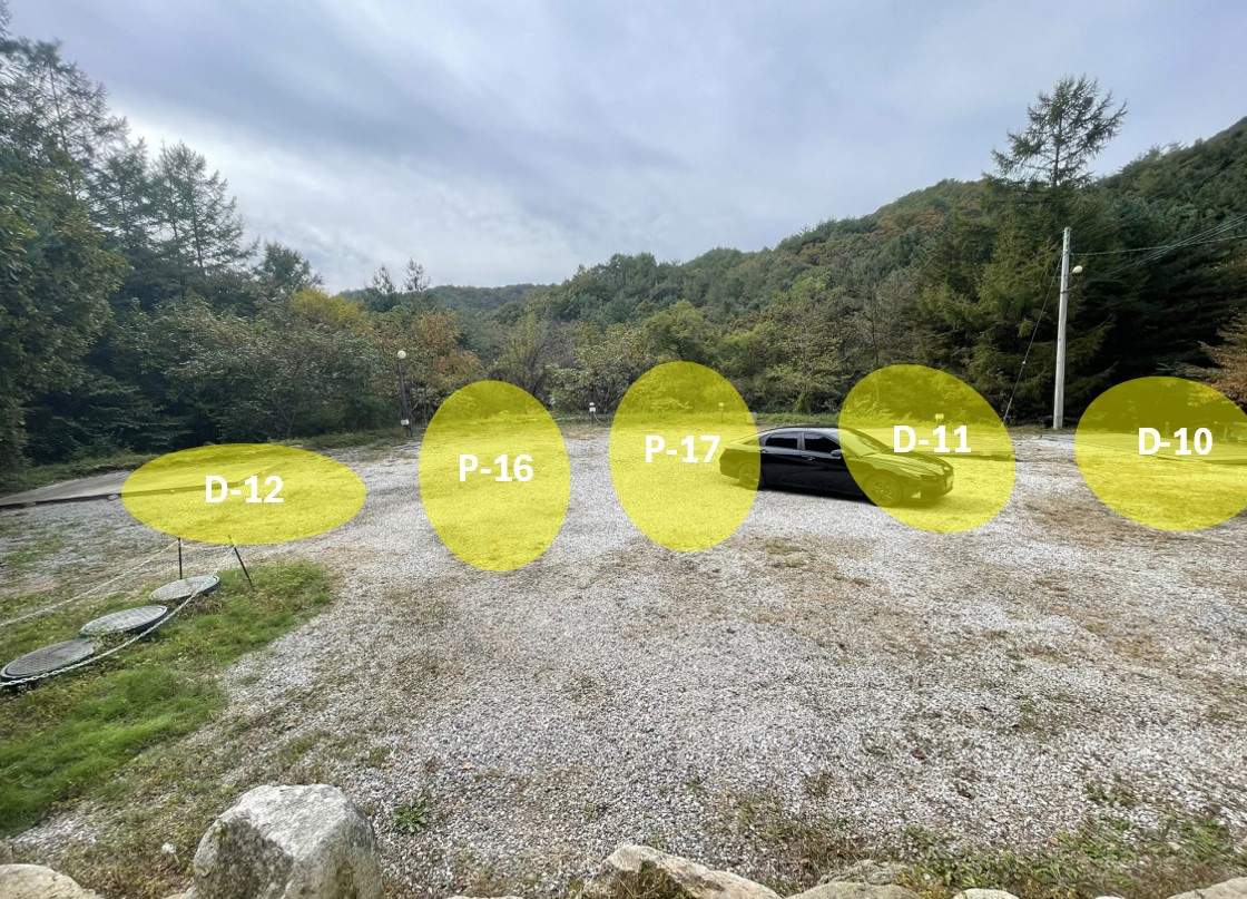 여기는 D-12쪽 자리입니다. 데크 사이트예요. 이 쪽 구역은 전체적으로 자리를 넓게 쓸 수 있어서 좋아요.