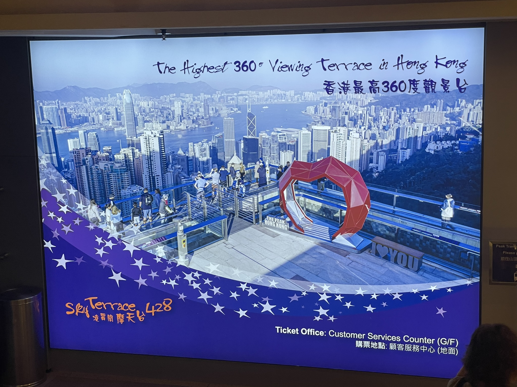 홍콩에서 가장 높은 산 빅토리아 피크에 있는 해발 428m의 홍콩에서 가장 유명한 전망대입니다. 그래서 이름이 스카이 테라스 428이에요. 이곳은 홍콩에서 가장 높은 야외 전망대로 알려져 있어요.