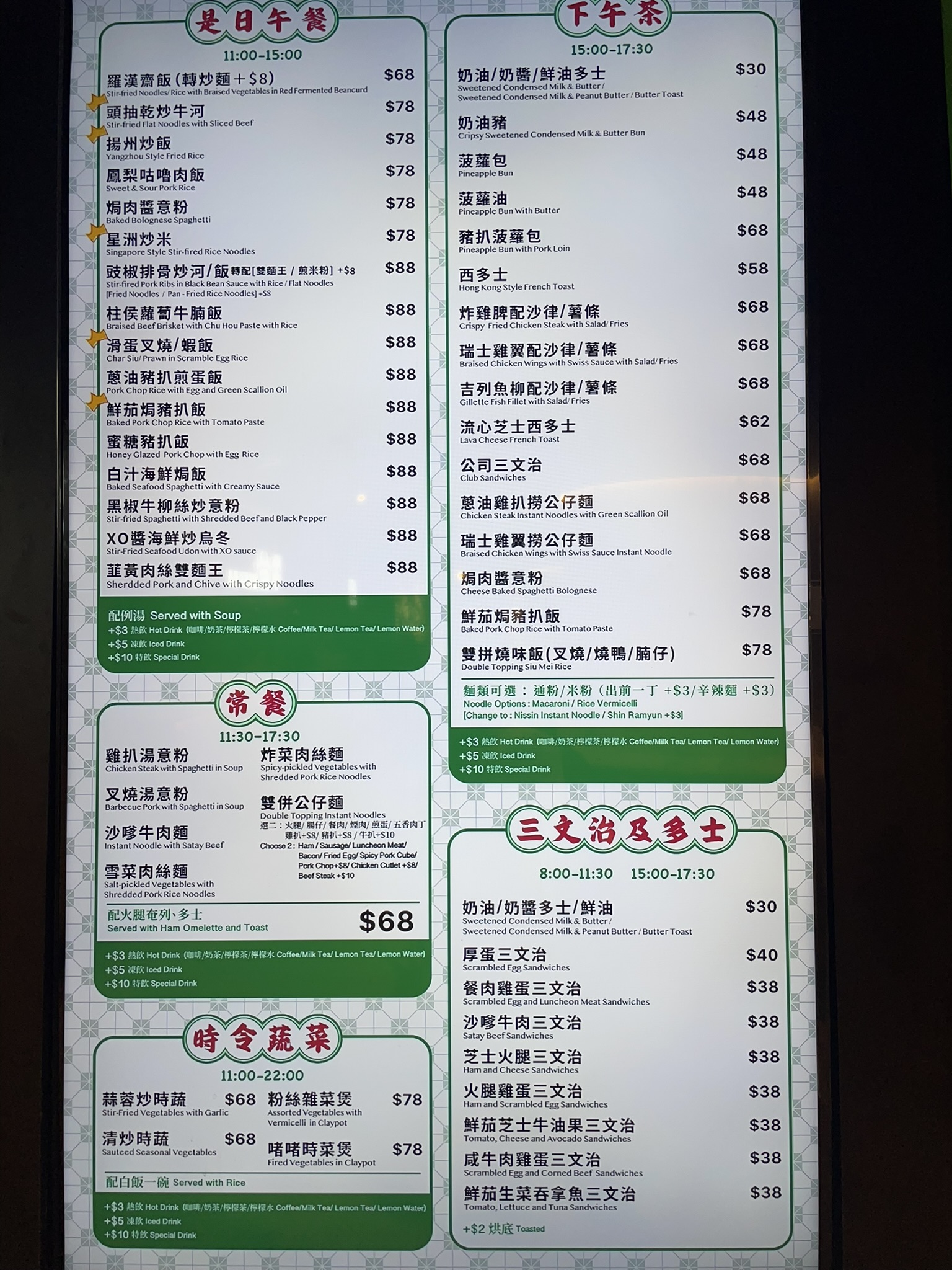 HONG KONG TEA CAFÉ 여기는 여러가지 현지 음식을 판매해요. 복음밥, 구이종류, 누들음식 등이 있어요.