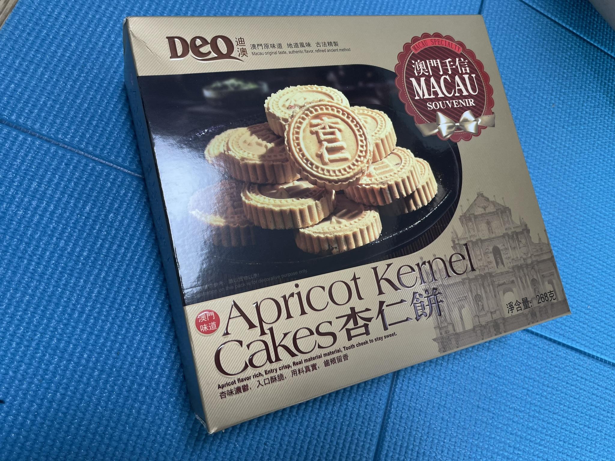 행인병이라고 하는 과자인데요. 마카오여행 갔다 오면 하나씩 사 오는 마카오 전통과자입니다. 선물용으로도 유명해요. 저희는 귀국하는 날 마카오 페리터미널에서 샀는데요. 아몬드가루와 살구씨 가루로 반죽해서 구운 쿠키라고 해요.