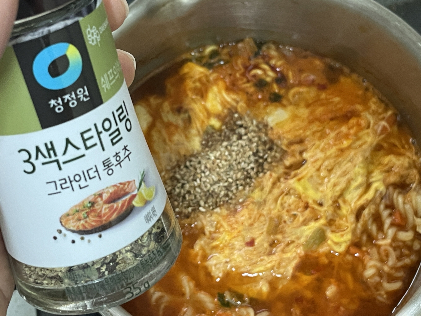 후추를 넣어서 후추향이 열라면의 강한 맛을 더 끌어올려주네요.