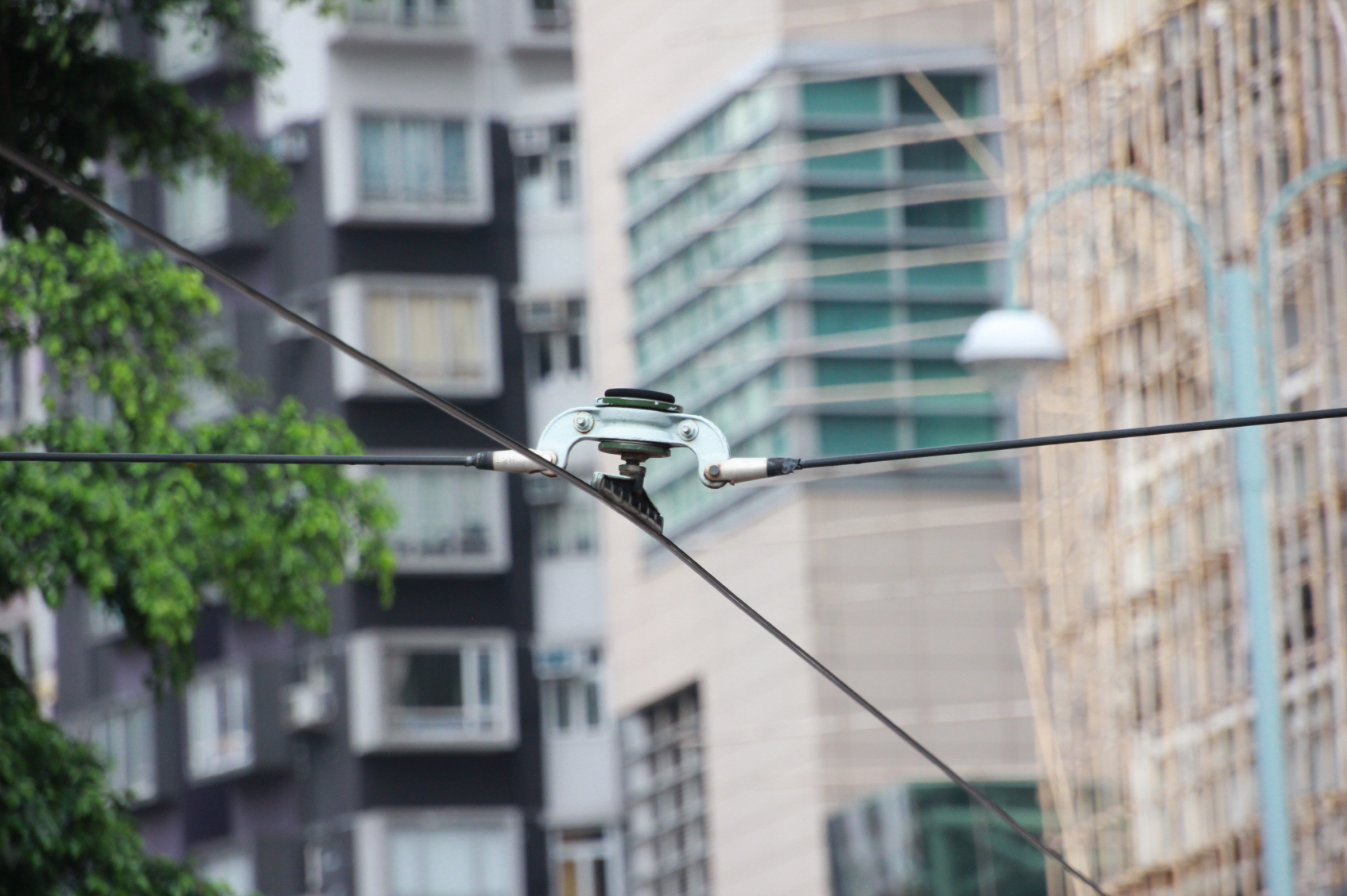 이렇게 생긴 전선과 전선을 고정하는 장치로 트램에 전기를 공급합니다.