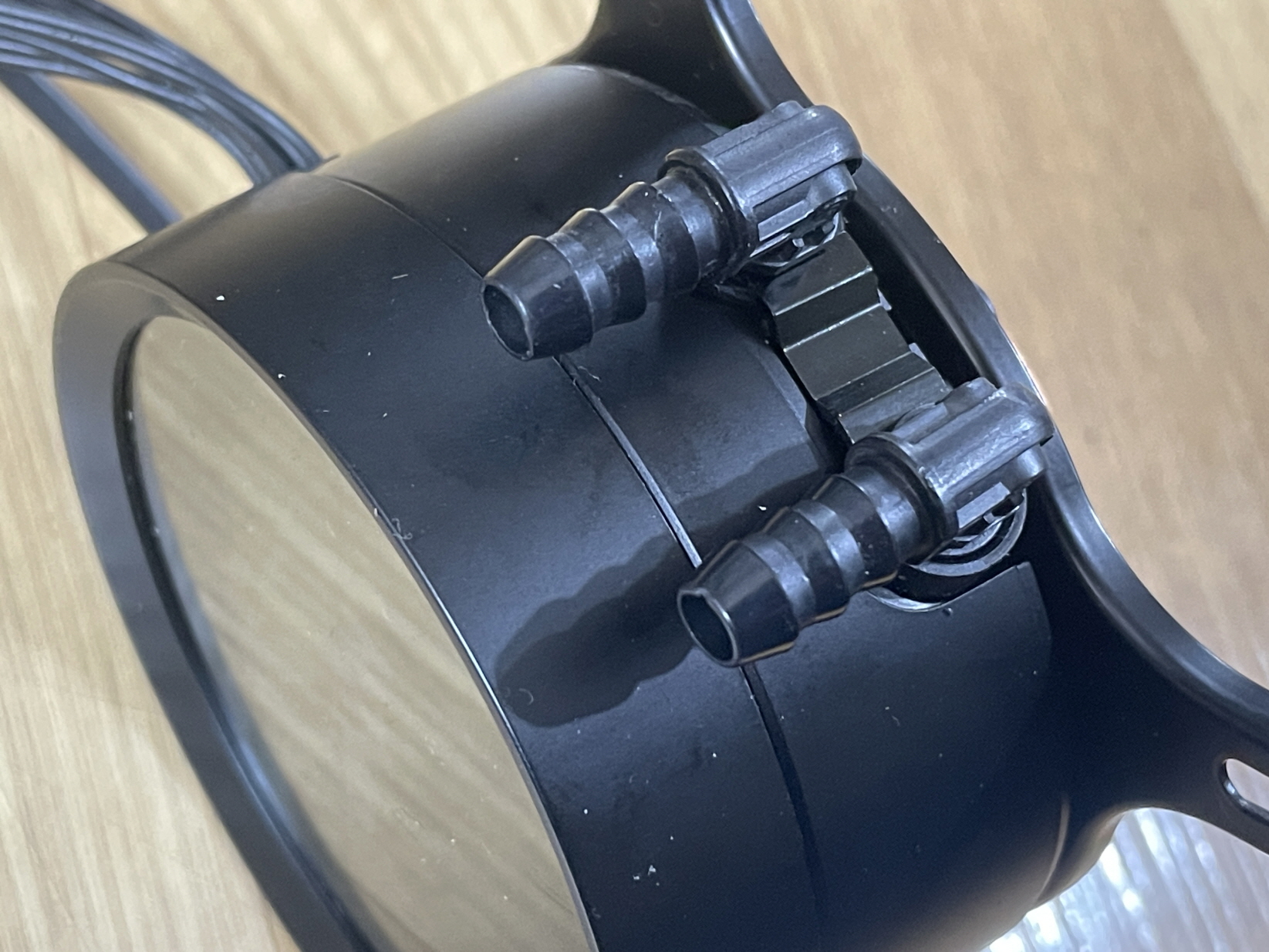 예상과는 다르게 압력이 높은 것 같지도 않고, 냉각수가 호스 안에 꽉 차 있지도 않네요. 이 정도면 냉각성능이 좀 떨어지지 않을까 의문도 듭니다.