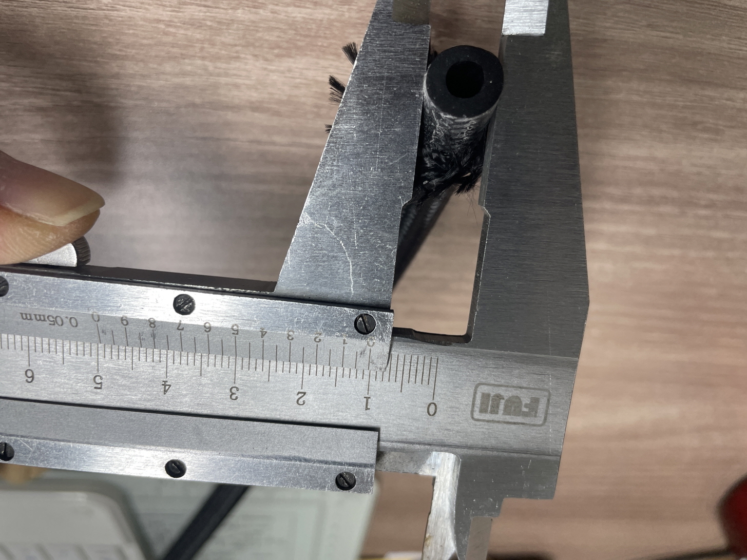고무호스 안쪽 구멍의 지름은 5mm네요. 외경은 10mm입니다. 상당히 두꺼운 고무호스입니다.