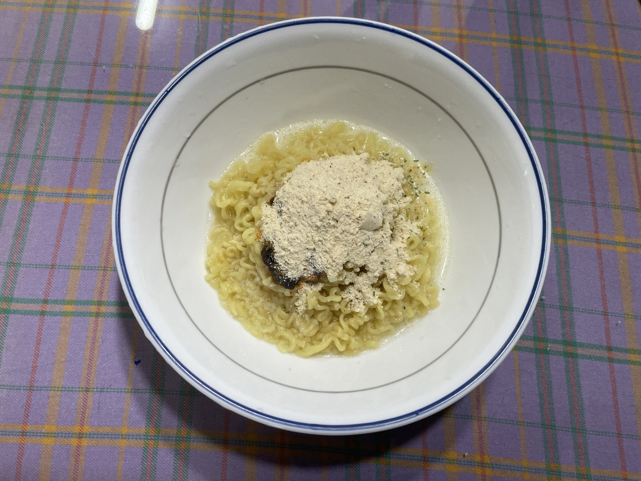 면을 그릇에 담고 물도 8스푼 정도 자박자박하게 넣어요.