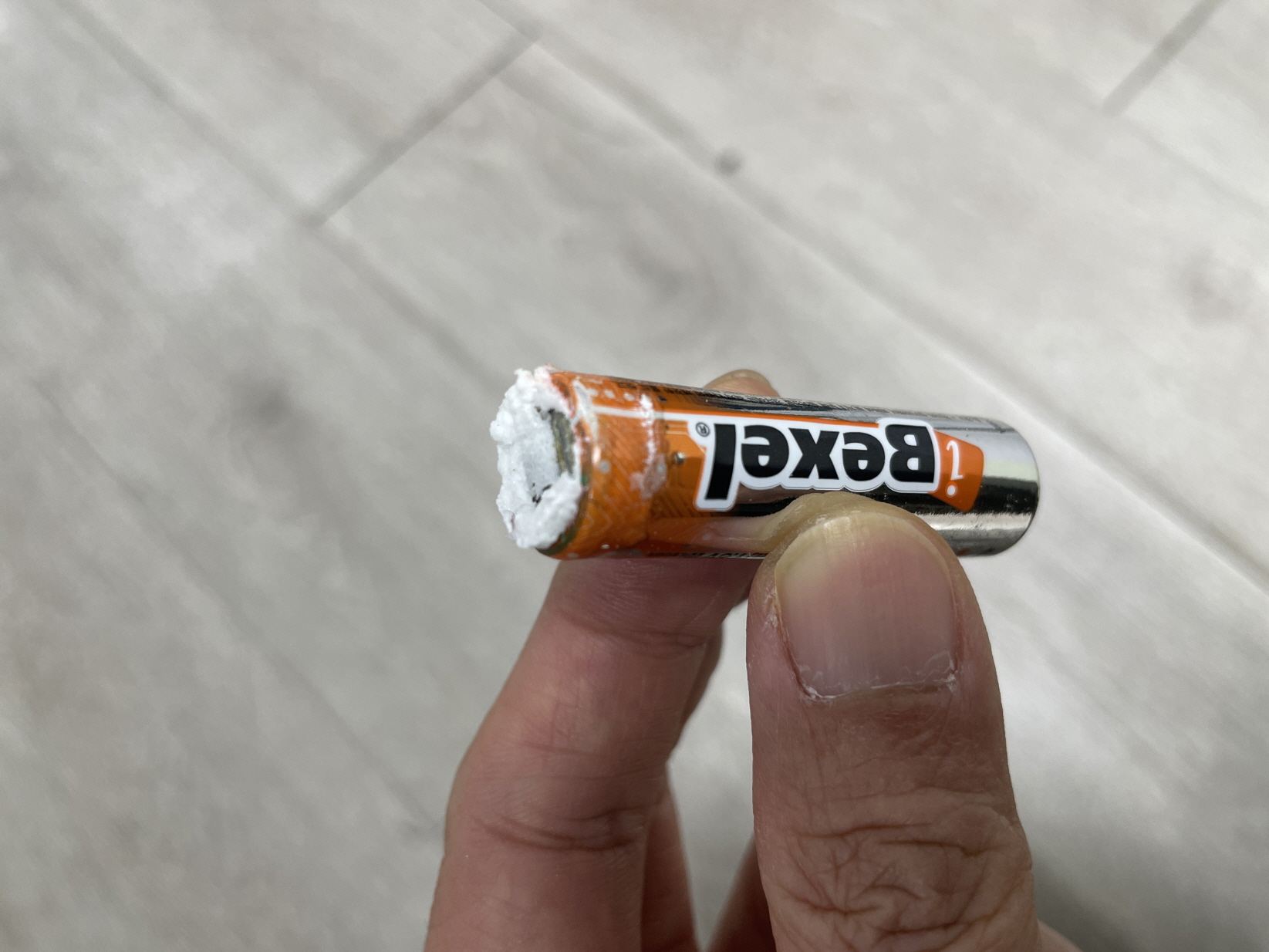 하얀 가루: 주로 수산화칼륨(KOH)과 같은 알칼리성 물질의 결정입니다. 알칼리 건전지가 부식되면서 나타나는 흔한 현상입니다.