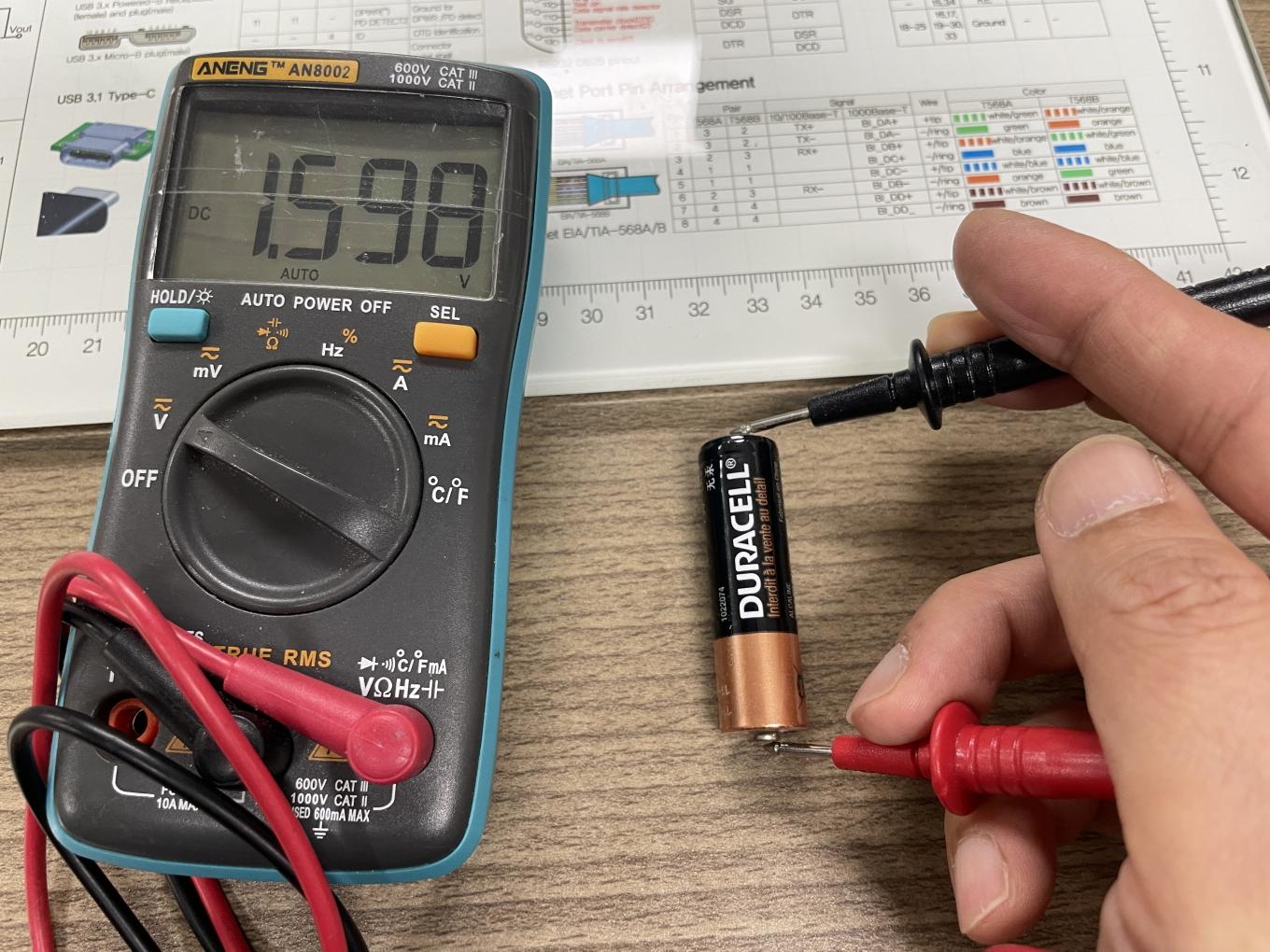 폐기할 건전지: 1.2V 이하로 측정된 건전지 → 폐건전지 수거함에 안전하게 폐기.