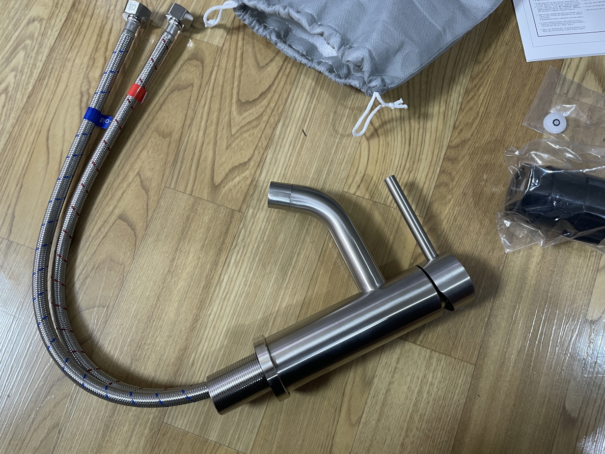 택배는 하루 만에 받아봤는데, 박스를 열어보니 무슨 수전이 부직포 가방에 들었네요.