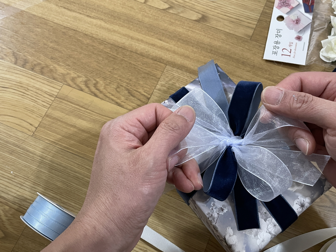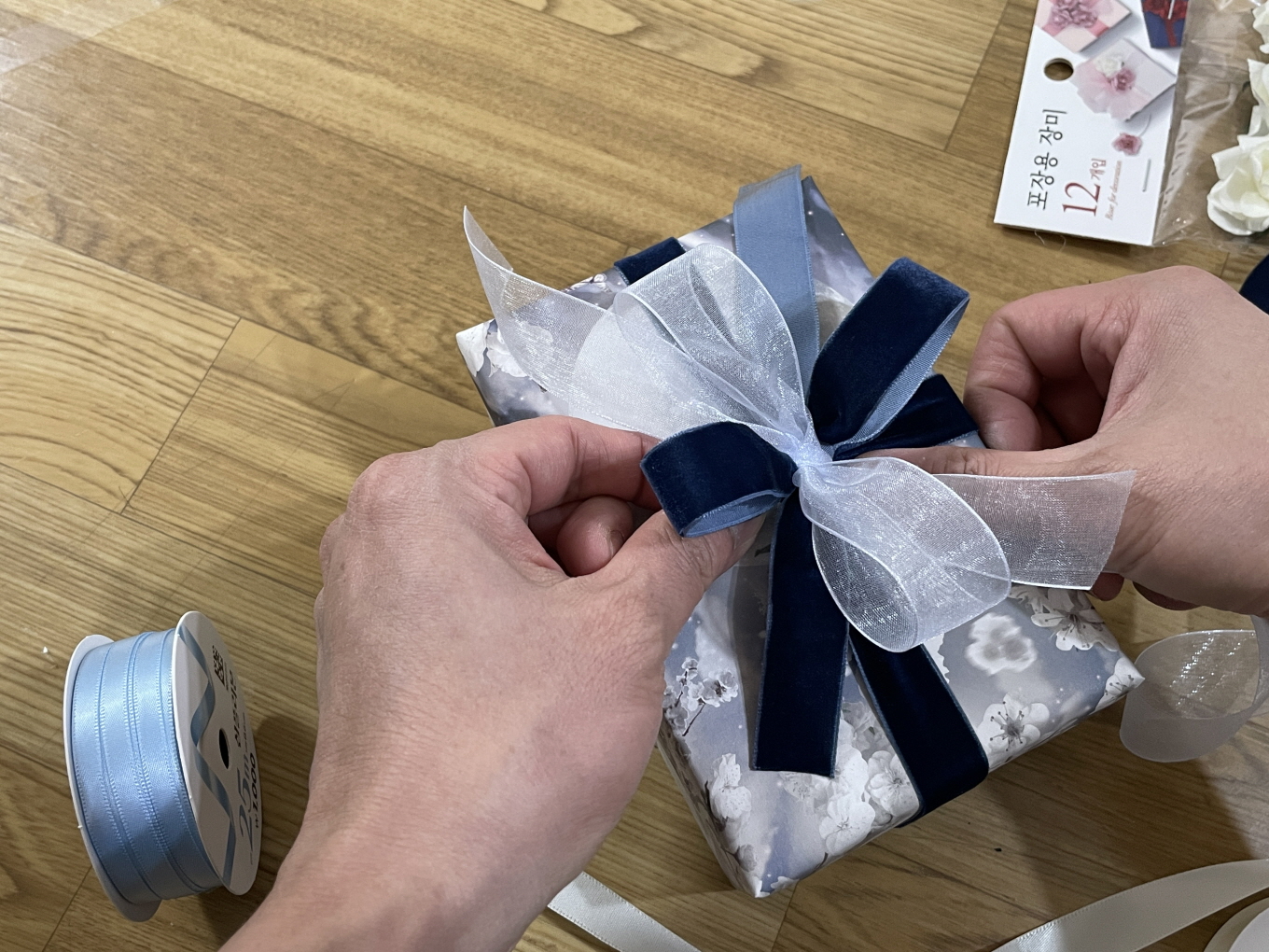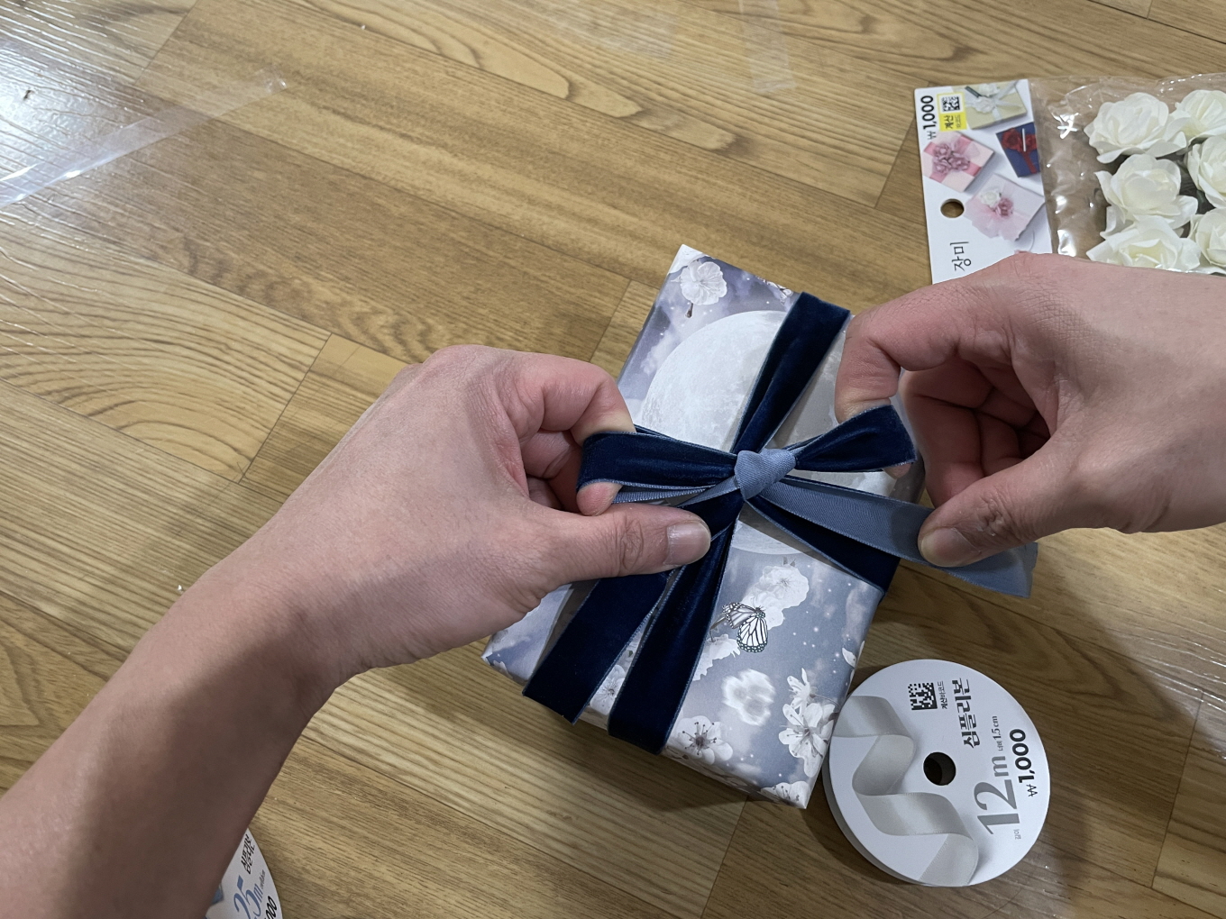 지난번에 다이소 리본으로 선물 포장하는 글을 올렸었는데요. 빨간색 리본으로 포장했었어요. 아래 링크 참고 바랍니다.