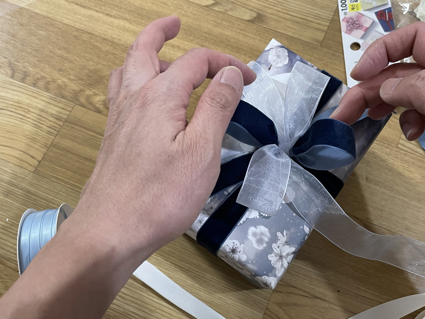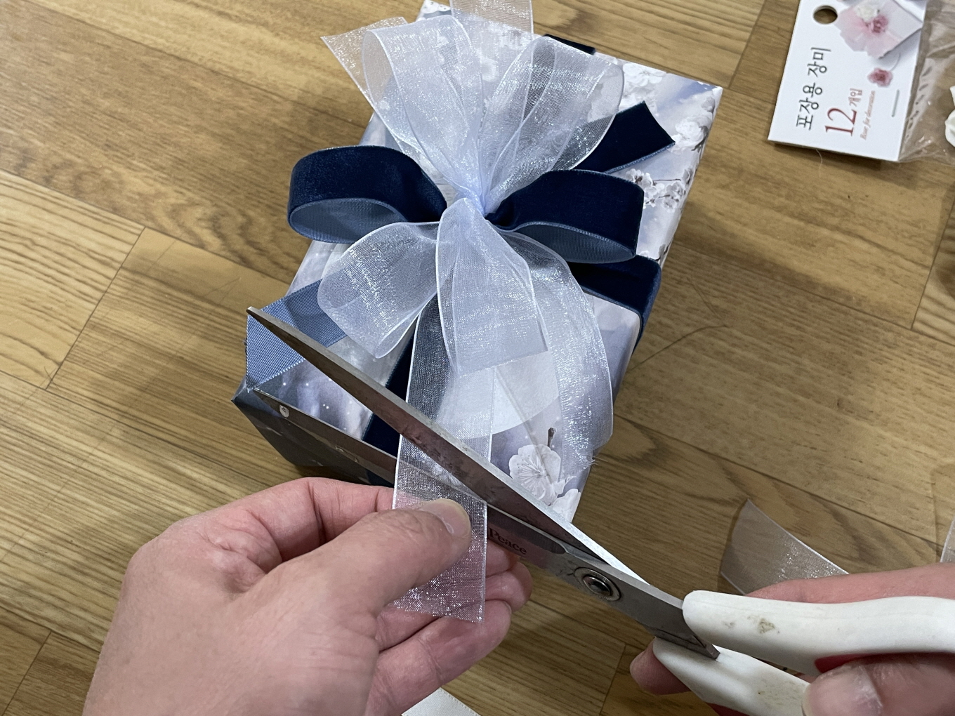 지난번에 다이소 리본으로 선물 포장하는 글을 올렸었는데요. 빨간색 리본으로 포장했었어요. 아래 링크 참고 바랍니다.