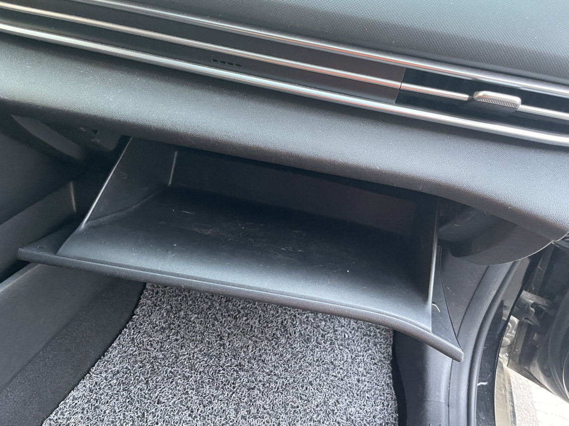 6 글로브박스를 끼웁니다. 하단의 거는 부분 먼저 걸친 다음 양쪽 홈을 맞춰 끼웁니다. 분리와 마찬가지로 안쪽으로 당기면서 끼워야 합니다.