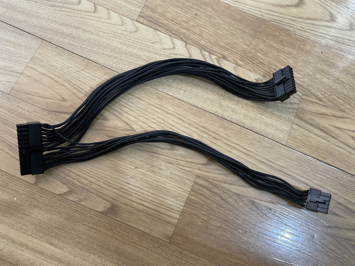 지금 보여드린 케이블은 메인보드 케이블만 보여드렸는데요. CPU전원선, 그래픽카드 전원선, 쿨러 케이블, 파워온스위치 케이블도 길이에 맞게 만들어야 합니다.