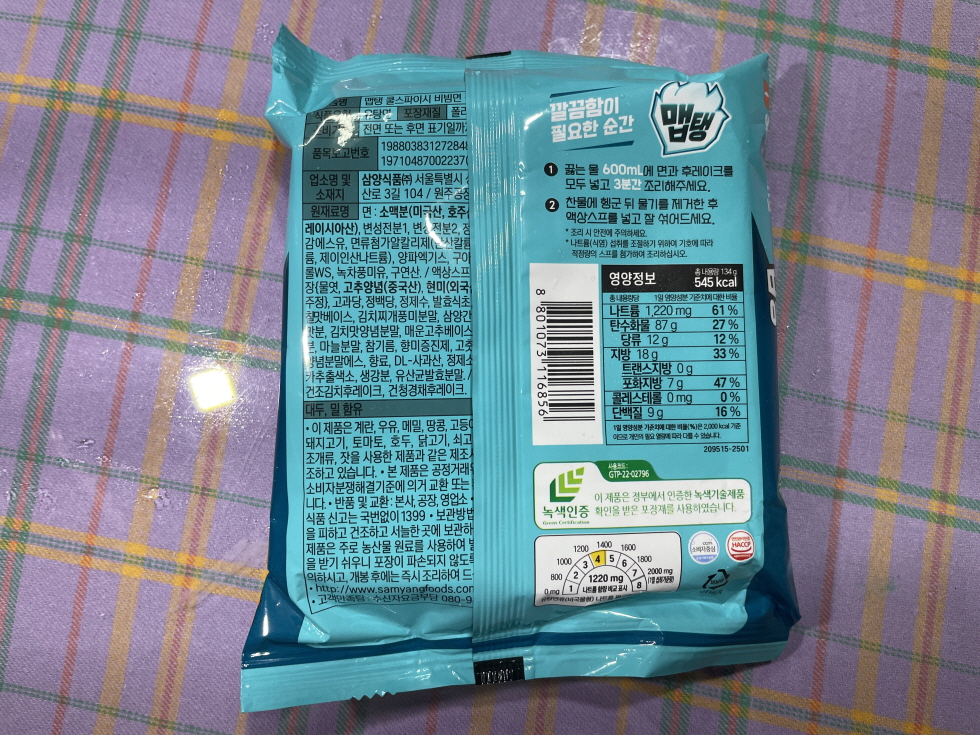맵탱의 새로 나온 비빔면 쿨스파이시 김치맛을 먹어봤어요. 큐베브페퍼 오일을 넣어 기존 비빔면과는 다른 시원하면서도 매운맛을 느끼게 되는데요. 실제로는 차갑지 않은데 먹을수록 시원한 감각을 느끼게 한다고 해요. 신기한 맛의 비빔면이지만 재미있고 맛있네요.