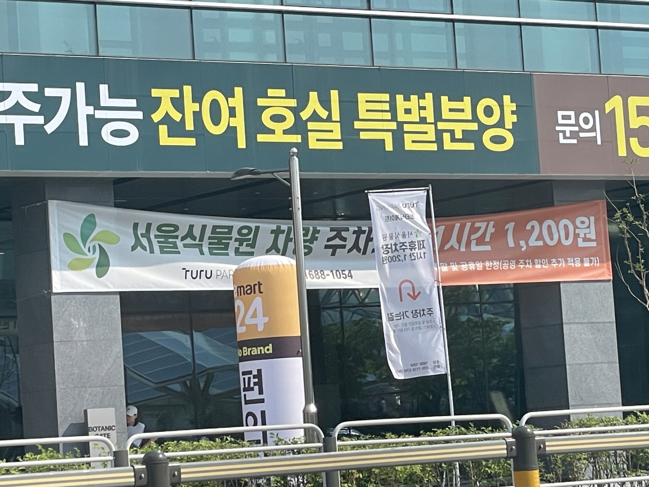 서울식물원 입구에 가면 주차하려는 차량들이 많아요. 줄서기 싫으면 입구 맞은편 건물(보타닉게이트 지식산업센터)에 주차하면 됩니다.