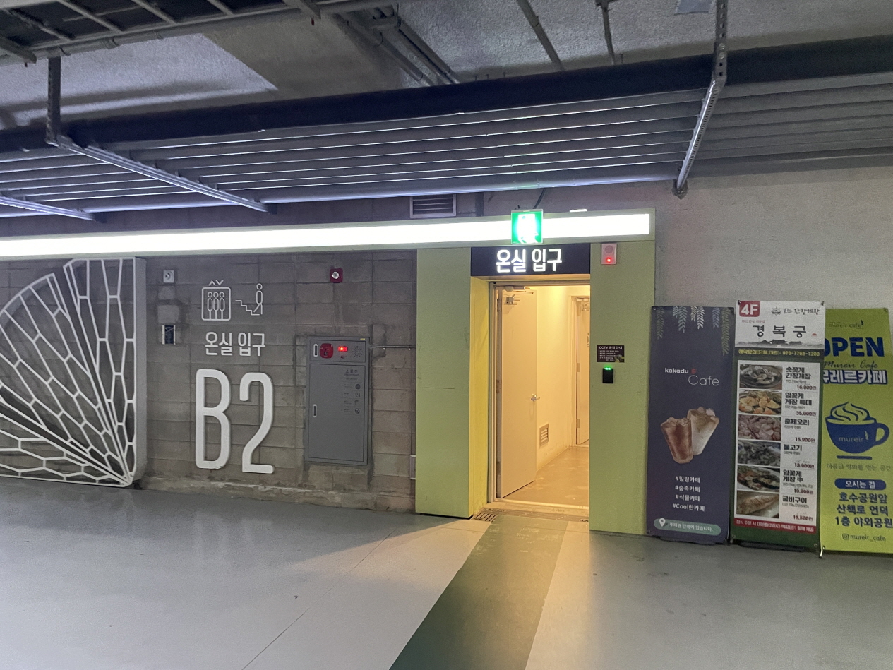입구를 지나 가장 먼저 들어가게 되는 곳이 온실이에요. 주차장에서 온실입구는 지하 2층으로 들어갑니다.