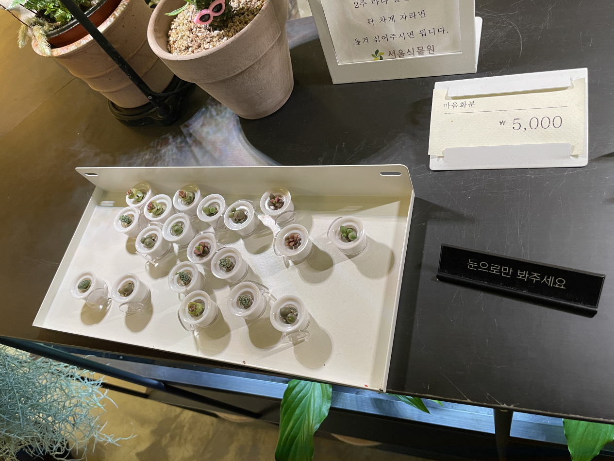 작고 귀여운 다육이는 정말 사고 싶네요. 그 외에도 사고 싶은 기념품과 식물 화분이 많네요.