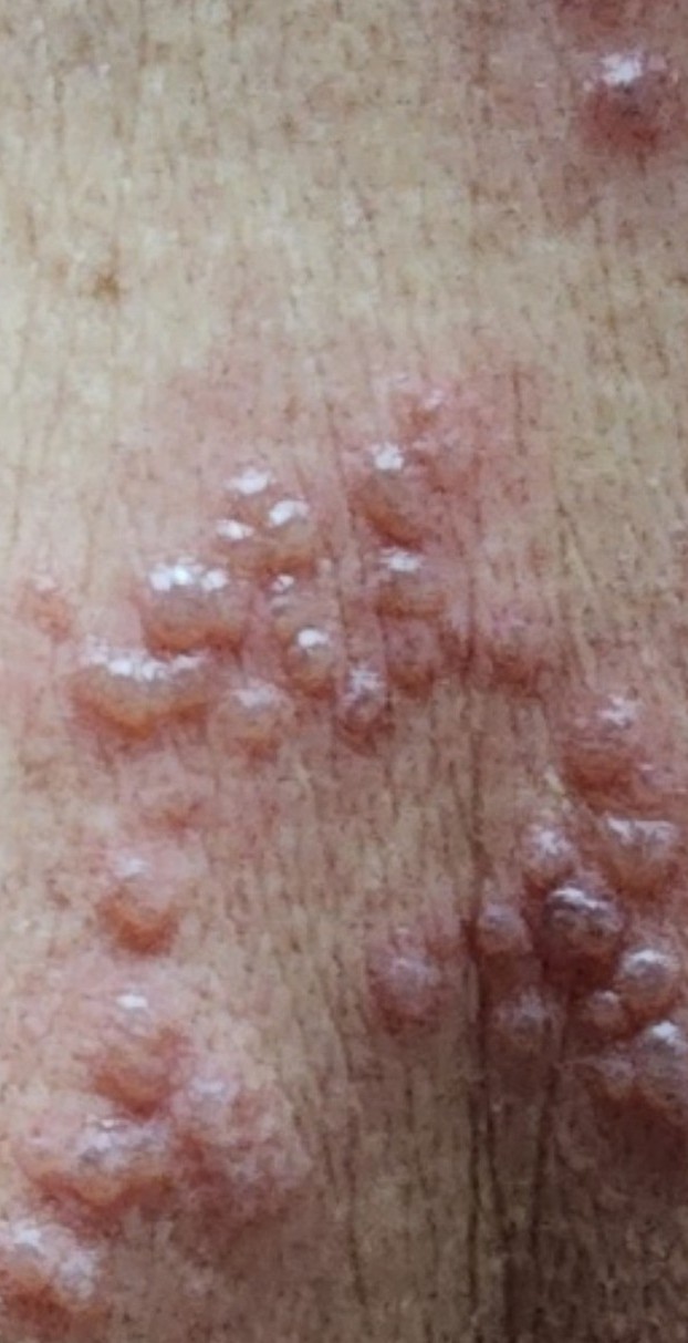 한쪽 부위에 띠 모양으로 발진 및 물집