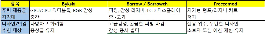 - Bykski, Barrow, Freezemod, 무엇이 다를까?