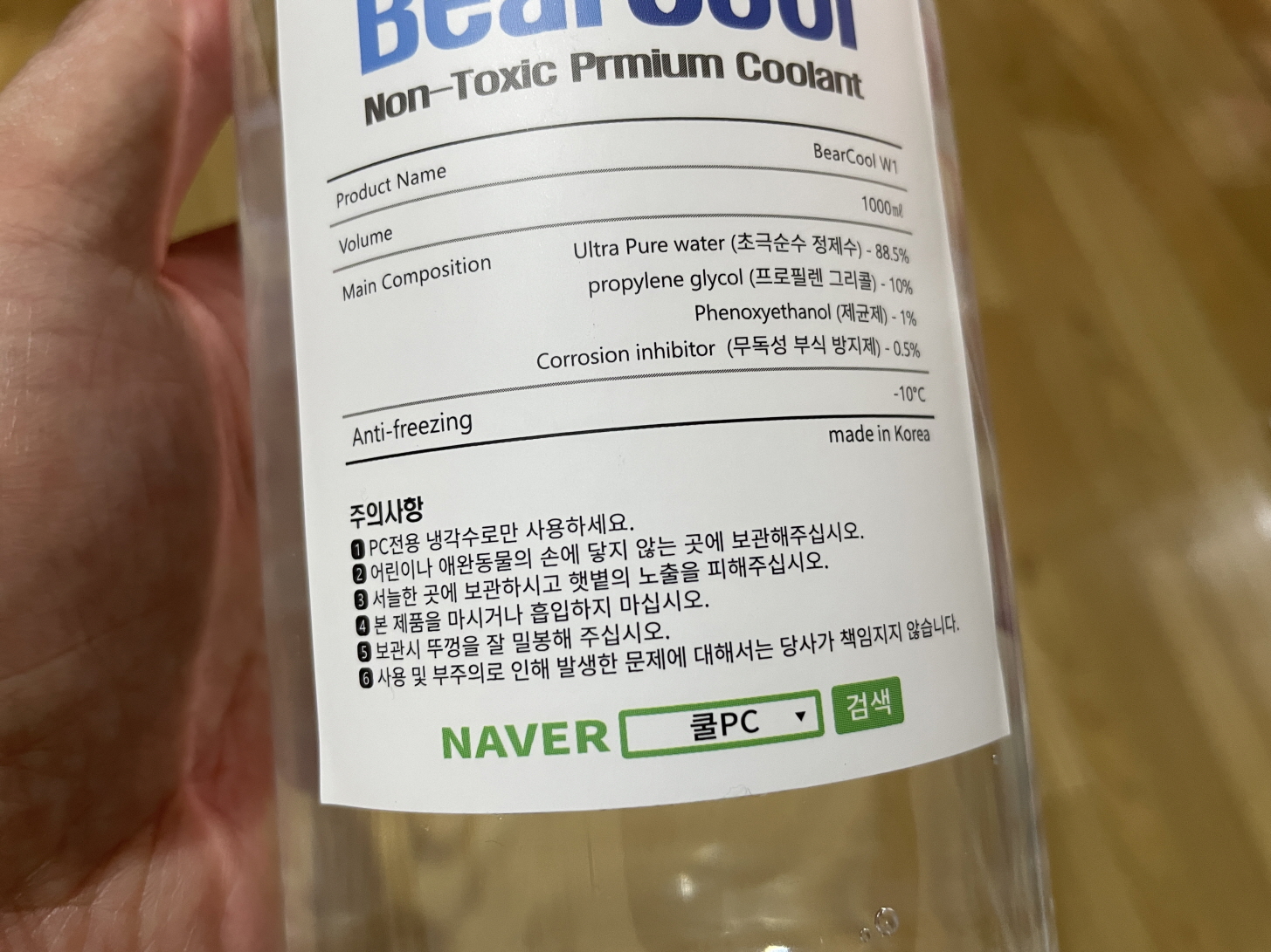 PC 수냉 쿨러용 냉각수 성분 분석 BearCool W1 리뷰 (무독성 프리미엄 쿨런트)