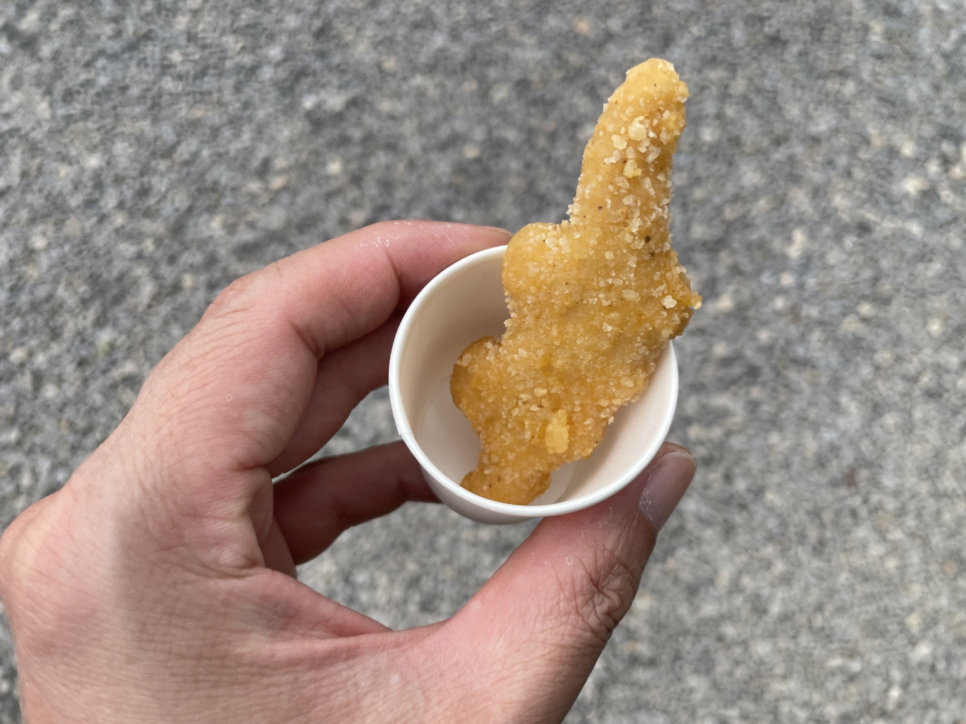 대부분의 시식과 행사는 오후에 많이 예정되어 있었어요. 행사 부스마다 시식예정시간을 이렇게 공지해 놨는데요. 일단 사파리에 간 공룡 치킨너겟부터 시식을 합니다. 2번 먹었네요.