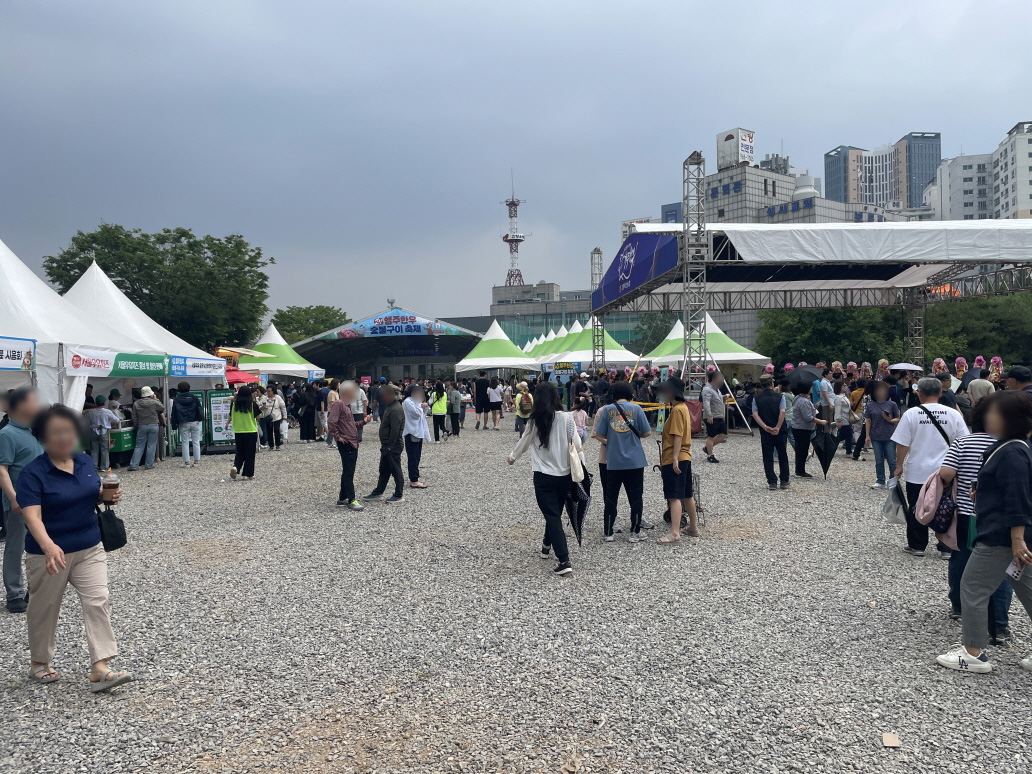 지난해에도 조금 늦은 시간에 찾아가 구이터에서 숯불구이는 못 먹고 시식만 배부르게 하고 왔었거든요. 올해는 좀 일찍 가면 자리를 잡을 수 있지 않을까 생각에 서둘러 갔지만 이미 만석이었습니다.