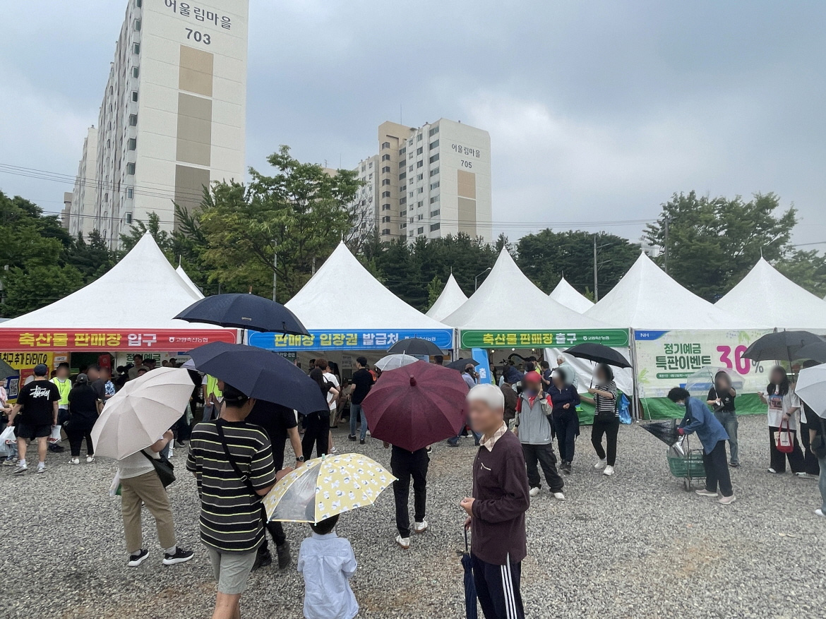 그리고 한우와 한돈을 30~50% 할인판매 해요. 고기 사가는 사람 많더라고요. 오늘 저녁에 먹을 고기를 미리 사가는 사람들인 것 같네요.