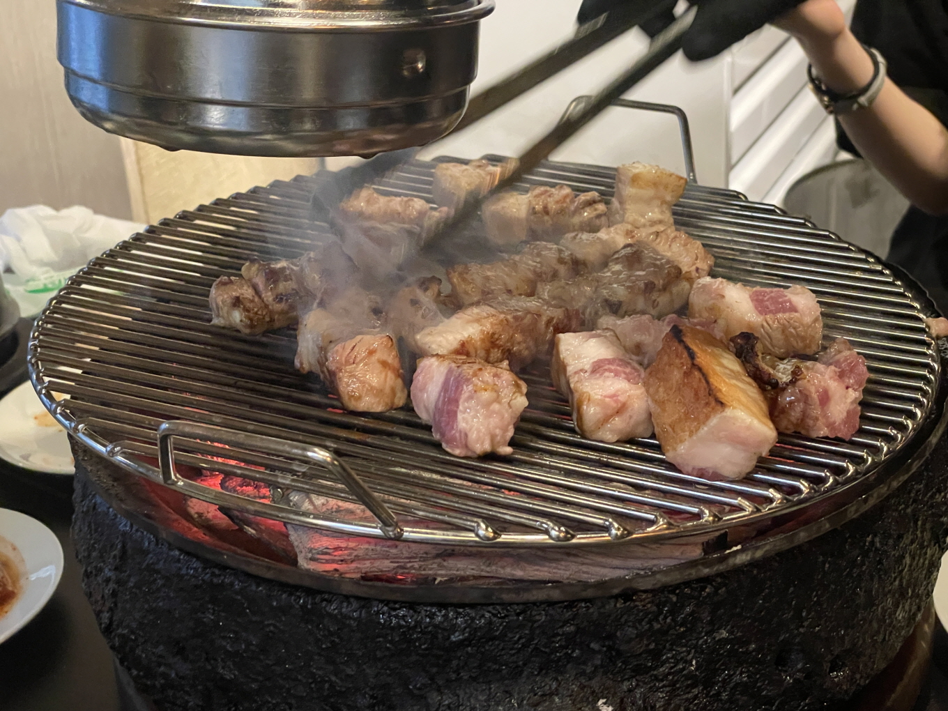 고기는 모두 직원분들이 먹기 좋게 구워 주십니다. 남영돈의 좋은 점인데요. 손님은 그냥 구워 주는 대로 먹기만 하면 됩니다. 가장 맛있게 먹을 수 있을 정도로 적당히 구워 주셔요.
