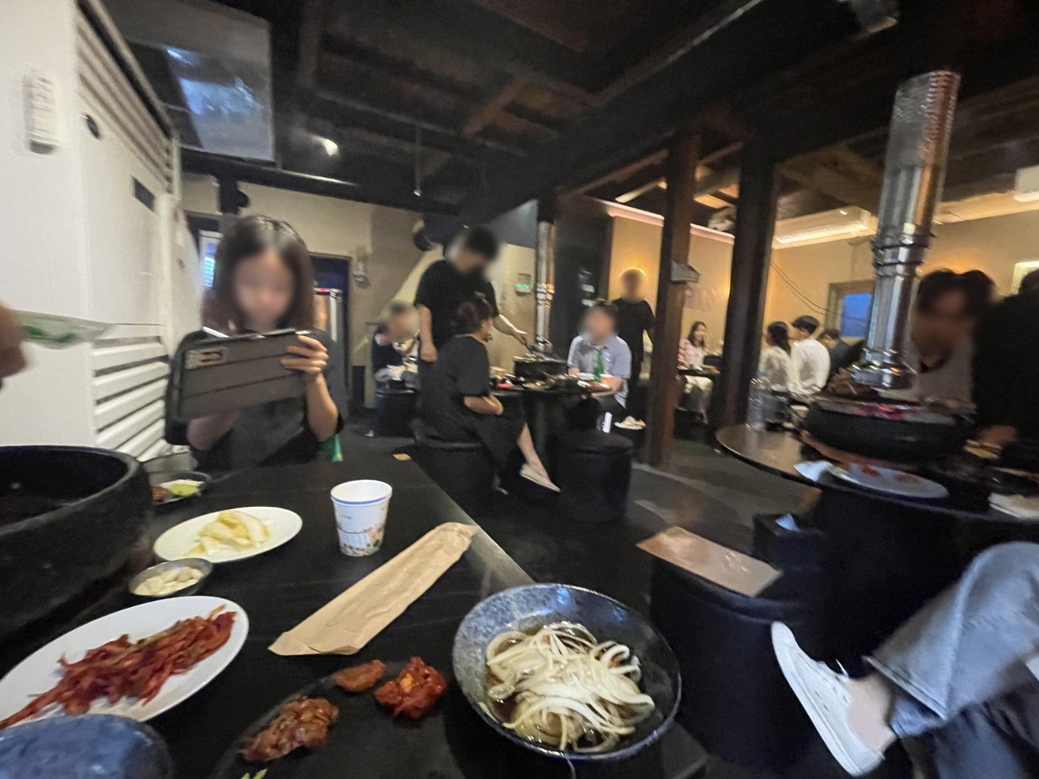 식당 앞에 기다리는 사람들이 있는데요. 이 사람들은 대기가 얼마 안 남은 사람들이 와서 기다리는 거예요. 이미 많은 사람들이 웨이팅 등록을 해놓고 근처에서 다른 거 하면서 기다리는 겁니다.