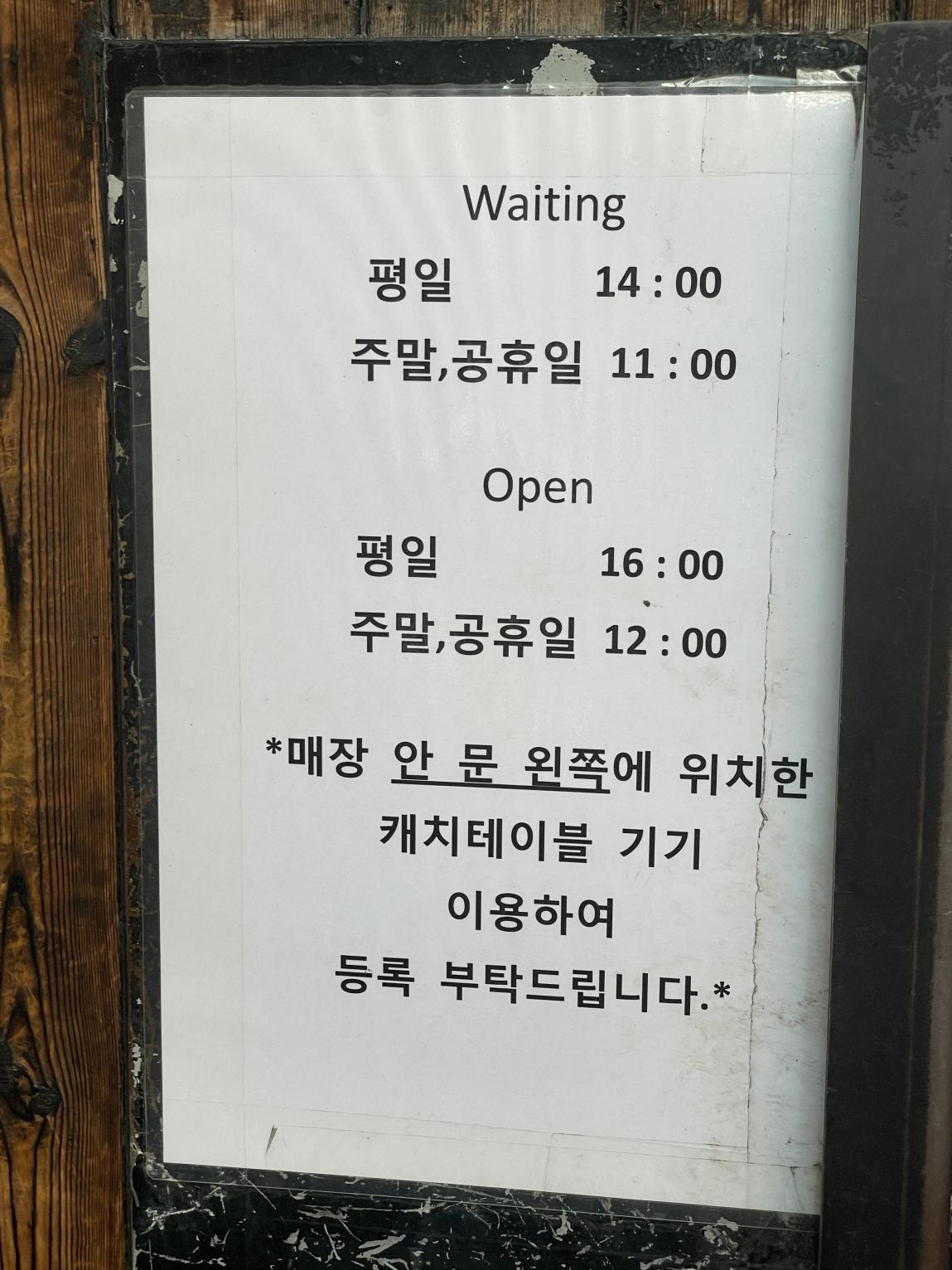 웨이팅 등록 시작시간은 평일- 오후 2시, 주말, 공휴일- 12시 부터입니다. 오픈런해도 이미 먼저 와서 기다리는 사람들이 있기 때문에 1시간~2시간은 기다린다 생각해야 해요.