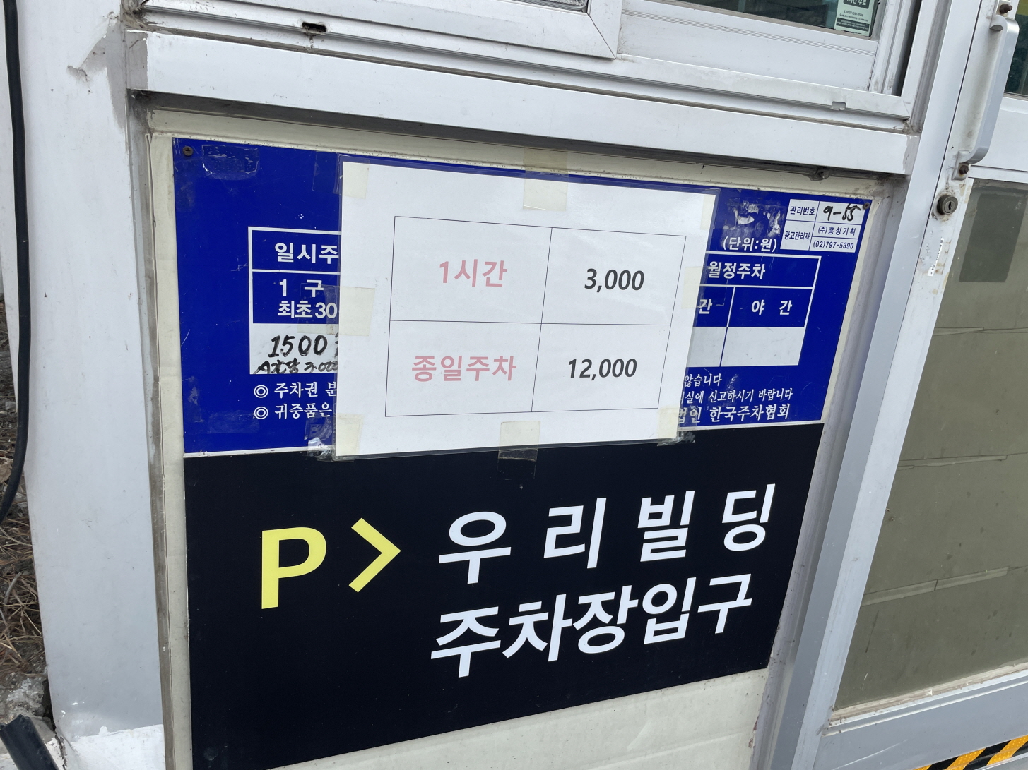 주차요금: 1시간-3,000원, 종일주차-12,000원