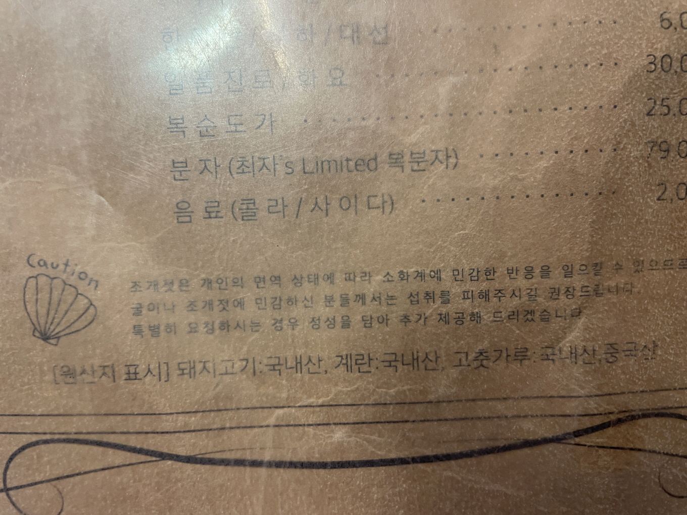 메뉴판에도 경고 문구가 있네요.