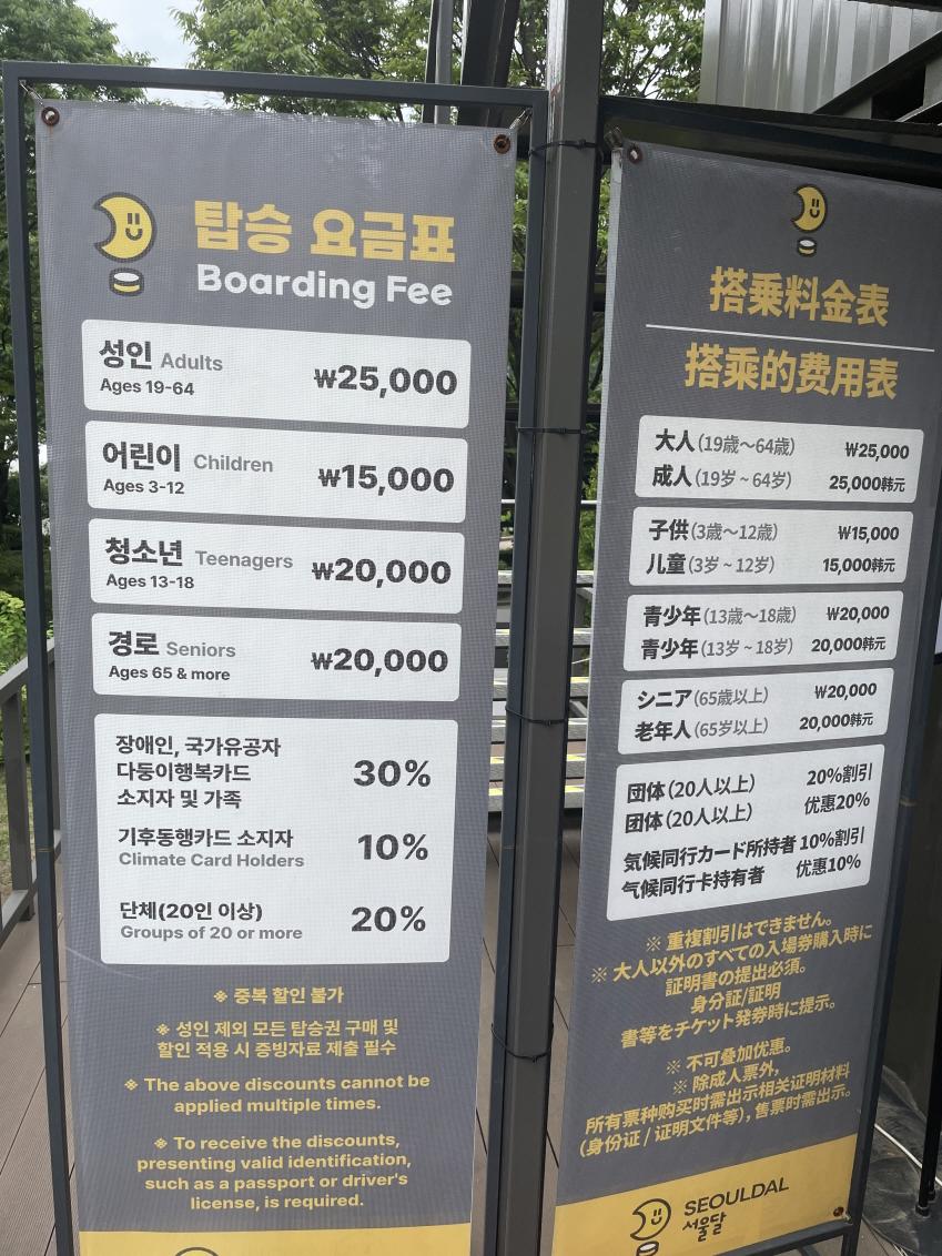 탑승요금: 성인-25,000원, 어린이-15,000원, 청소년- 20,000원