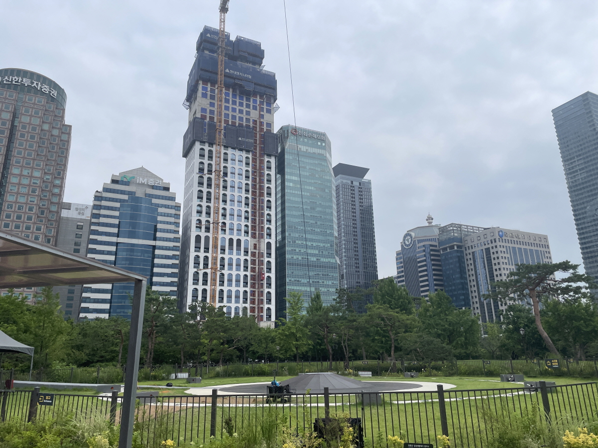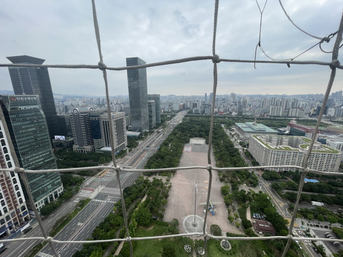 한강이 보이고 주변 고층건물들과 여의도공원이 훤히 보입니다.