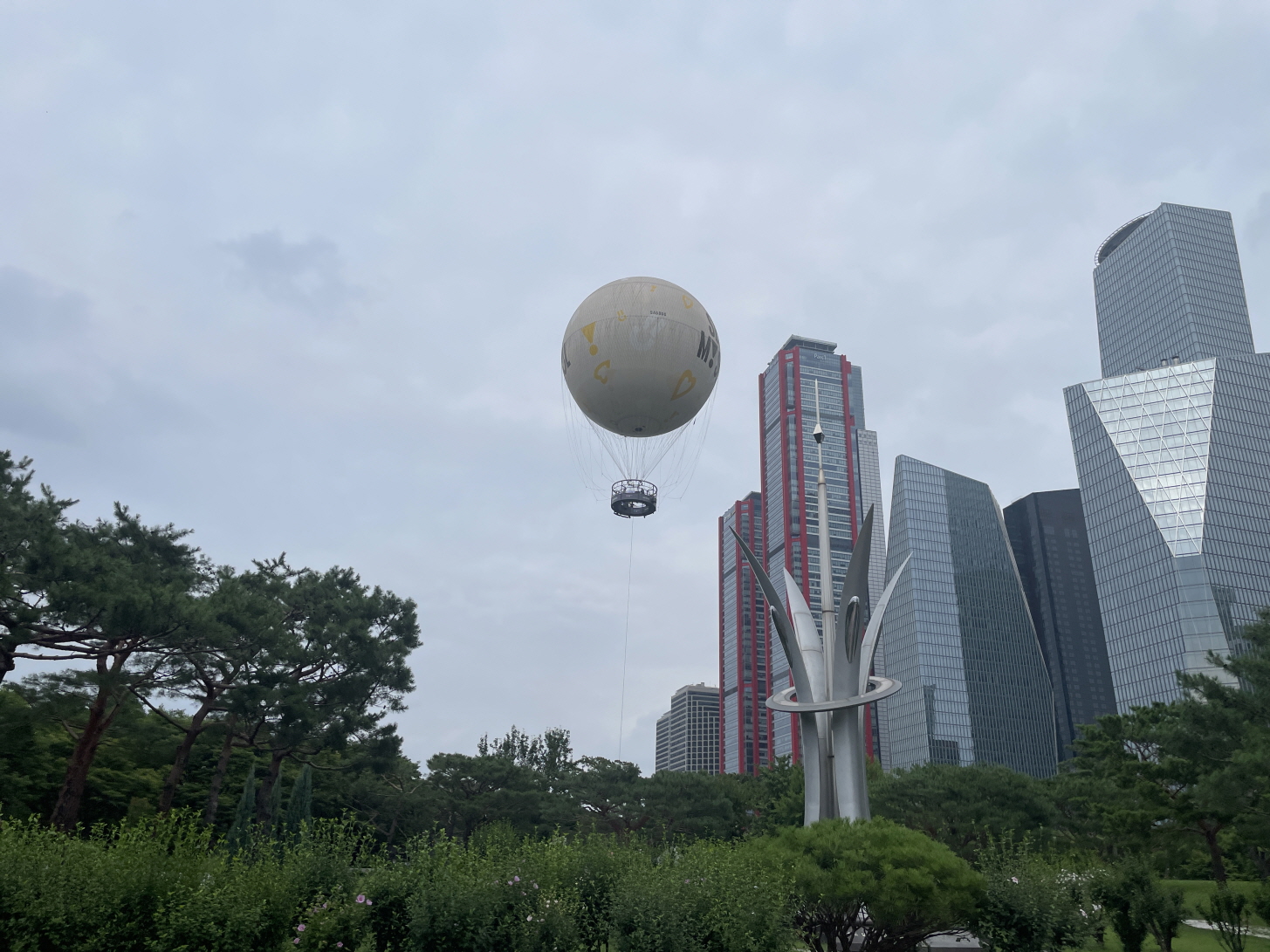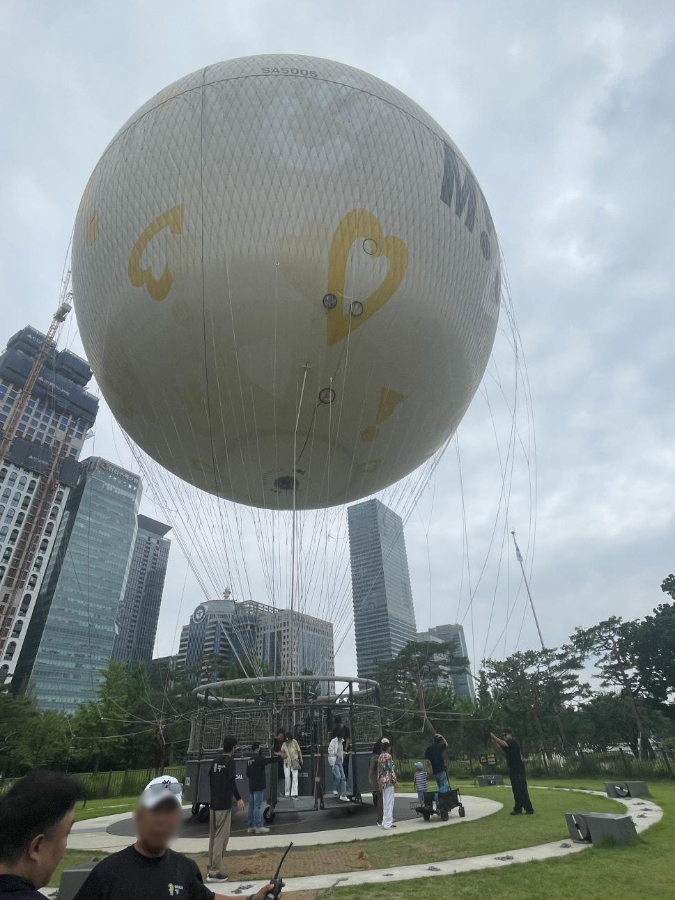 풍선에 사람이 탑승하고 줄로 아래에서 땡기고 있는 방식이에요. 가만히 떠있는 겁니다. 저희 일행은 이거 타고 여의도 한 바퀴 도는 건 줄 알았다네요^^;;