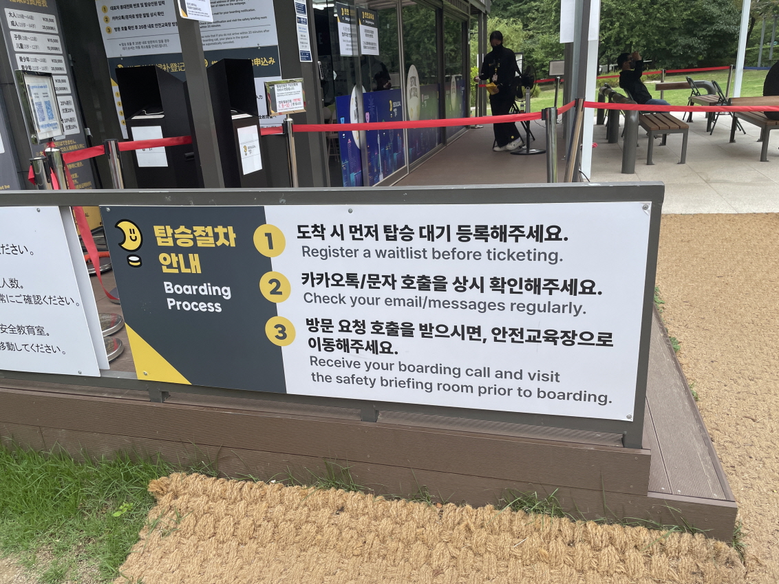 탑승 전 안전교육을 잠시하고 탑승하는데요. 위에 올라가서 이동하면 안 된다고 합니다. 사람들이 한쪽으로 몰리면 비행체가 한쪽으로 기울어지기 때문이죠. 그래서 처음에 자리를 잡으면 그 자리에서만 가만히 있어야 해요. 그리고, 휴대폰을 밖으로 빼서 사진 찍다가 떨어뜨리면 큰일 납니다. 아래에 있는 사람이 맞으면 대형사고가 날 수 있어요. 바람이 불면 조금 기울어질 수 있습니다. 안전교육은 대략 이런 내용이에요.