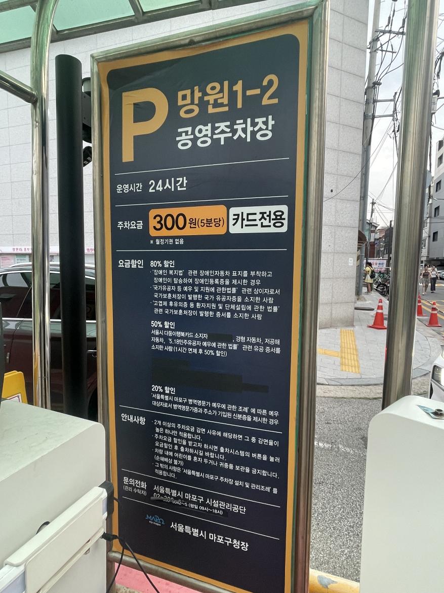 망원시장 내에 있어서 별도의 주차장은 없어요. 그래서 근처의 공영주차장을 이용해야 합니다.