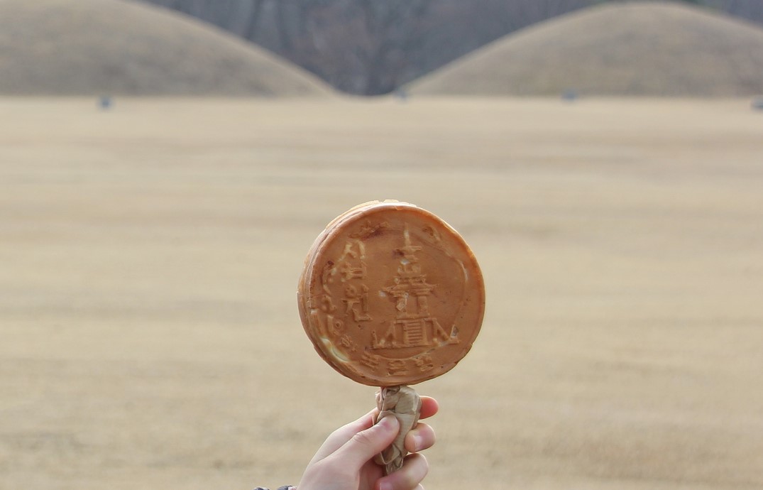 십 원짜리 동전에는 다보탑 그림이 있어서 경주와 연관성이 있는 빵인 것 같아요.