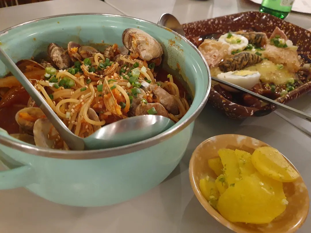 봉골래스파게티를 좋아해서 올리브바지락찜을 먹으려고 했으나 품절되셔 불맛매운바지락찜을 먹었습니다.