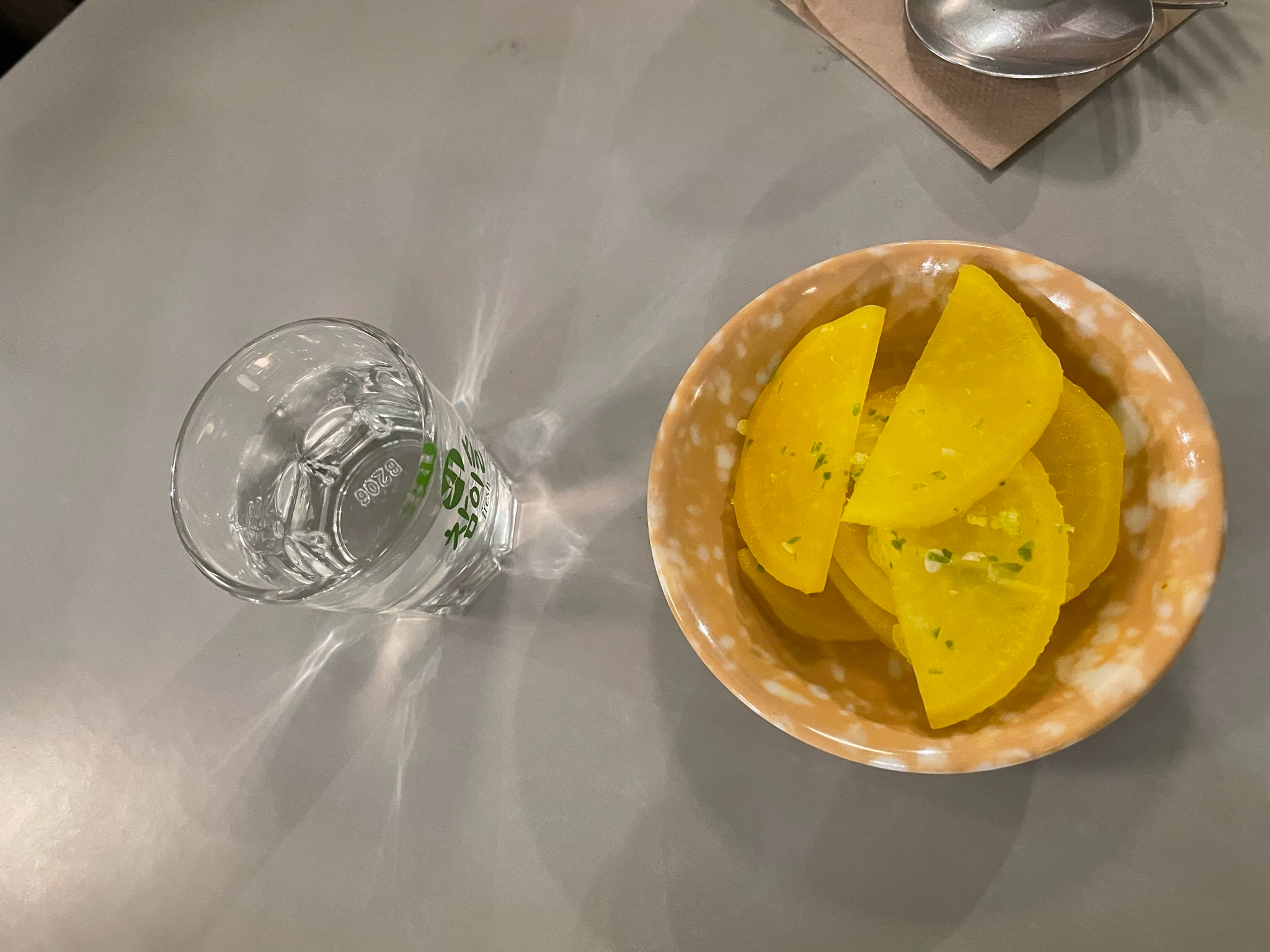 주문할 때 처음 나오는 기본 반찬 단무지가 맛있었어요. ^^