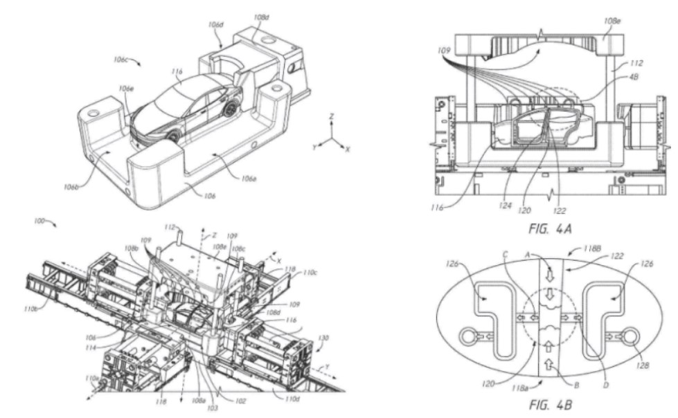 테슬라는 더 큰 프레스머신을 특허로 내면서 관심을 끌었는데요. 그림을 보면 차량 한 대를 한방에 찍어내는 듯한 기계로 보이네요.