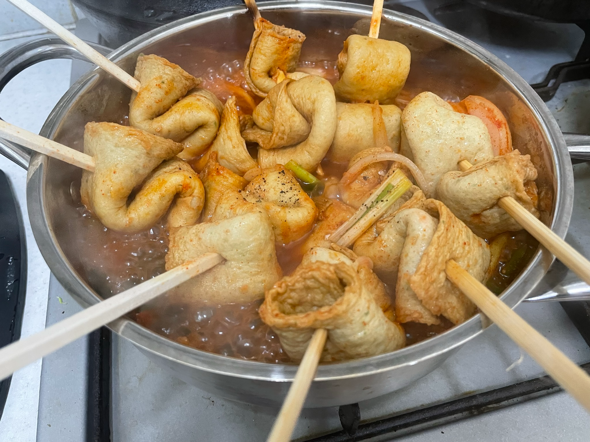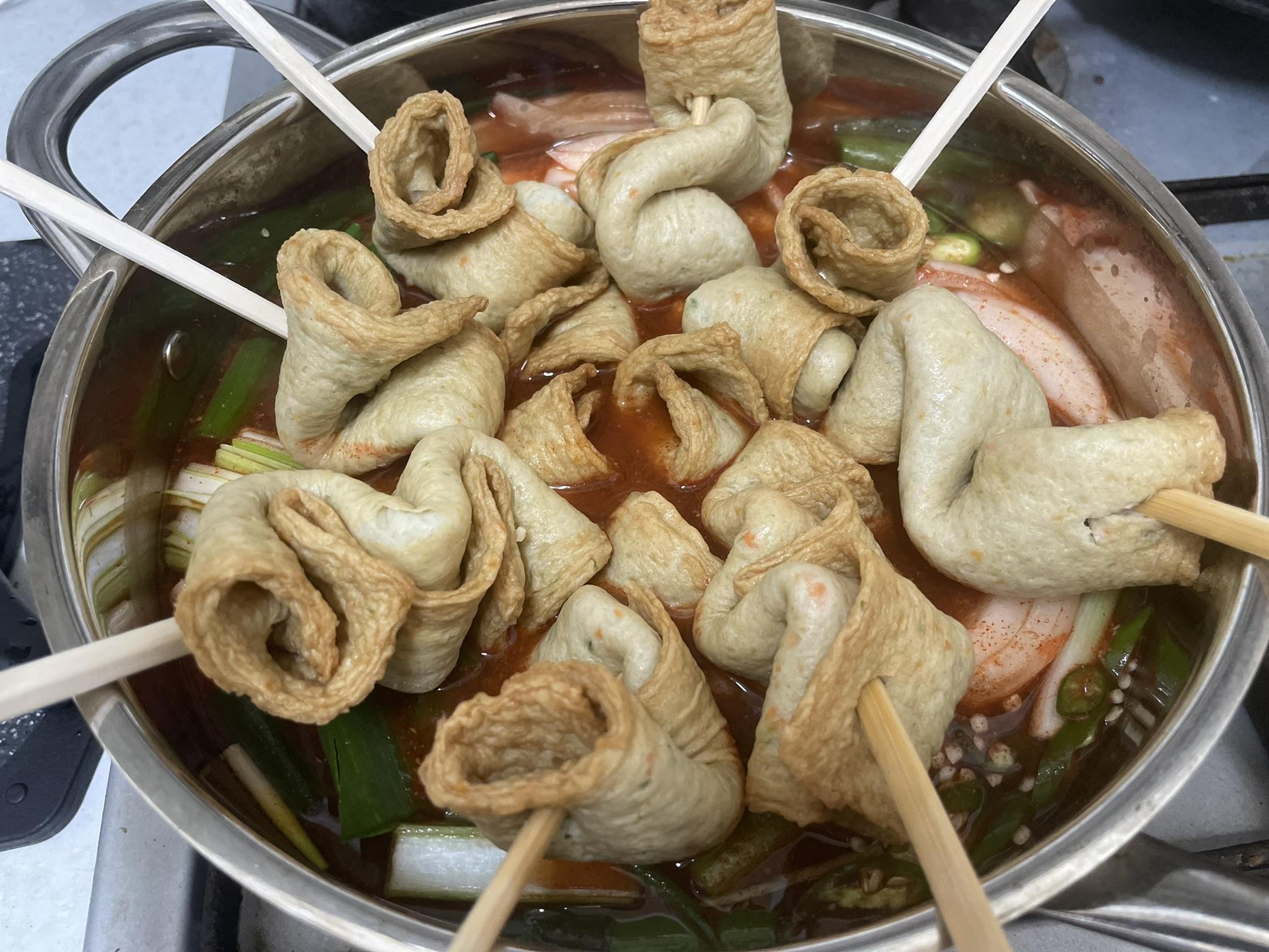 어묵 꽂이에 꽂아서 빨간 국물에 익히면 술안주로도 좋습니다.
